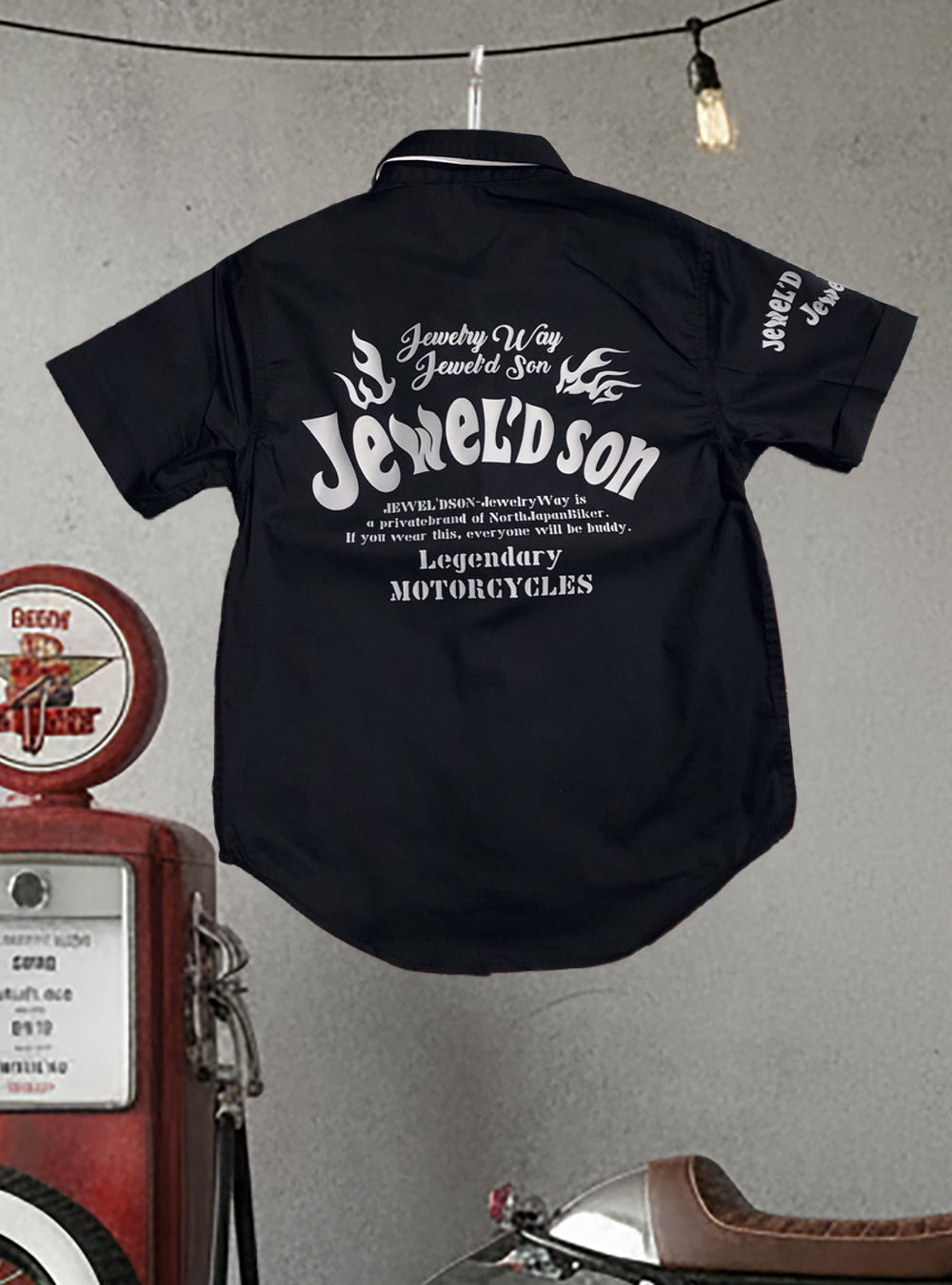「JEWEL'D SON(ジュエルドソン)」は、バイカーのスピリットをベースにしたアメリカンカジュアルブランドです。 受注生産スタイルだから、色・サイズ・デザインを自由に選んで、自分だけの一着をお作りします。デザインはグラフィックデザイナーが手がけており、バイクシーンはもちろん、タウンユースでも映えるスタイリッシュな仕上がりに。 バイクにまたがる瞬間も、街を歩くひとときも。 「JEWEL'D SON」は、あなたのスタイルを引き立てる一着を届けます。