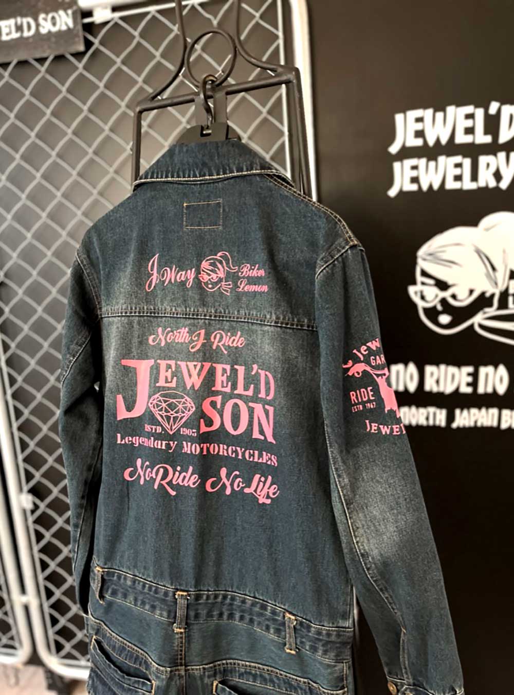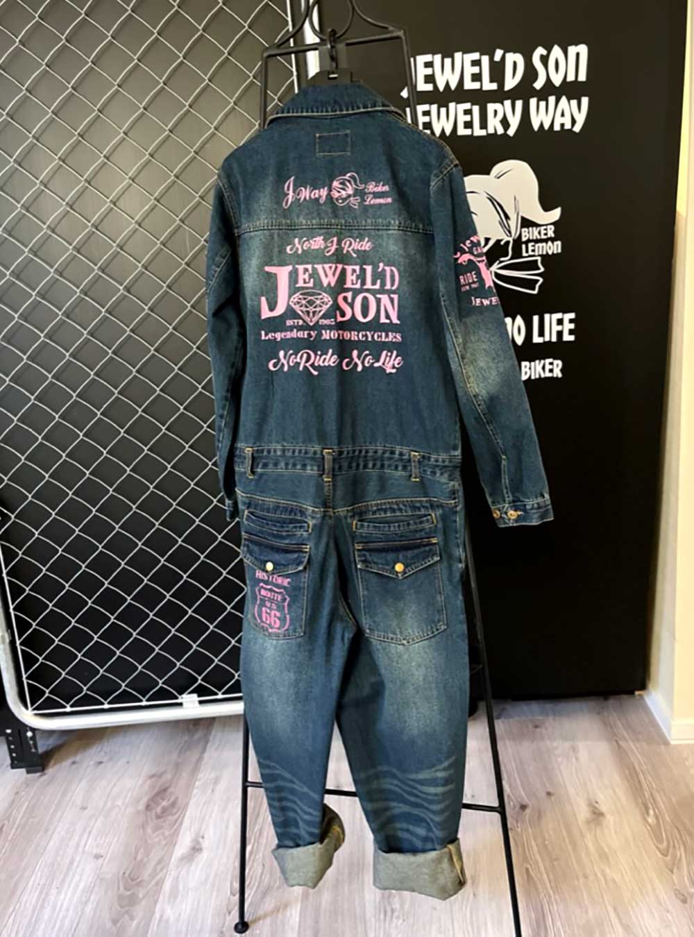 冷感ストレッデニムツナギ【Jewelry Wingデザイン】Pink & White