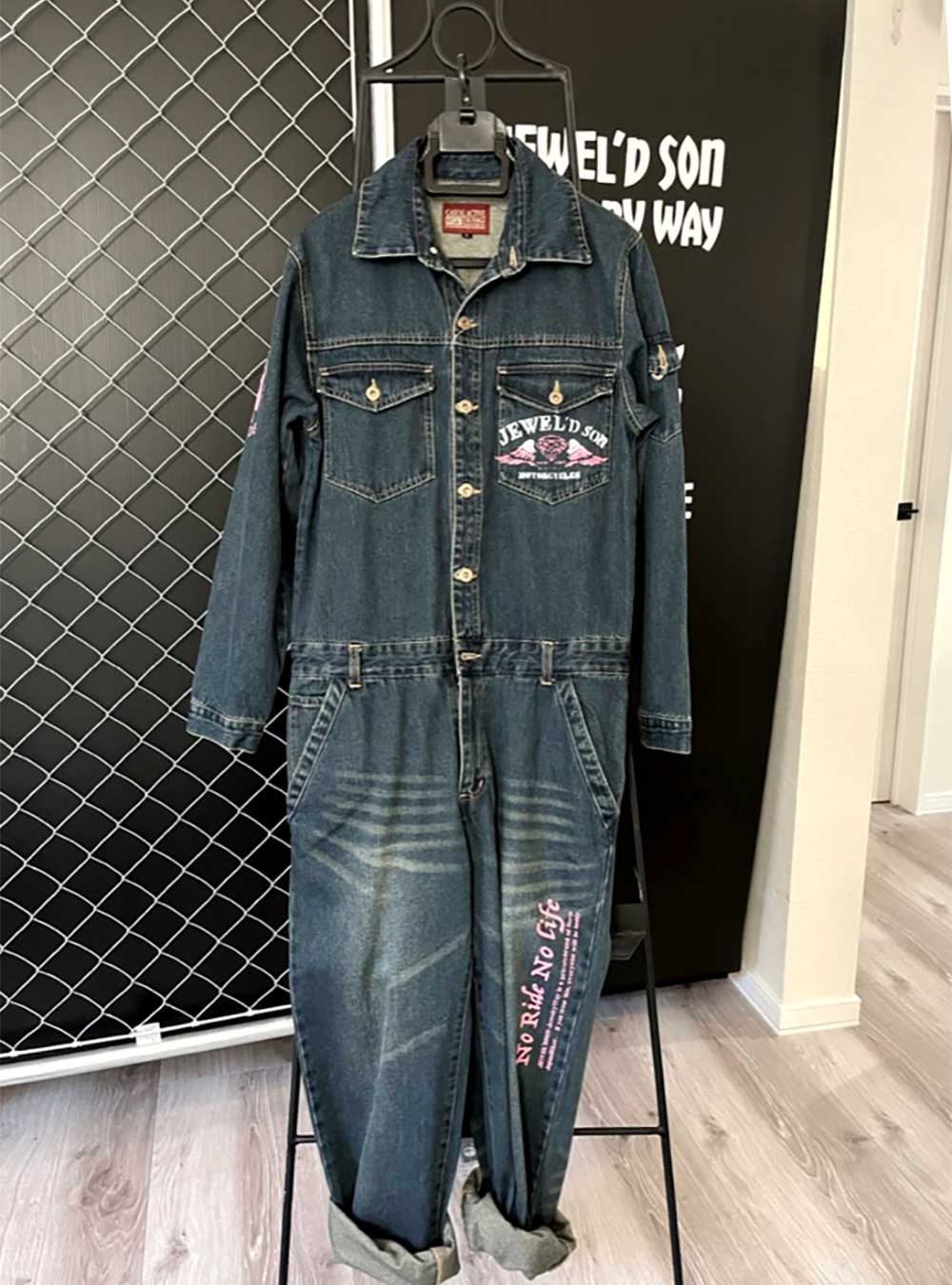 Backは『Jewel'd son 』ロゴを大胆シンプルにプリントしました。お尻のポケット、胸、足にもプリントしてます。