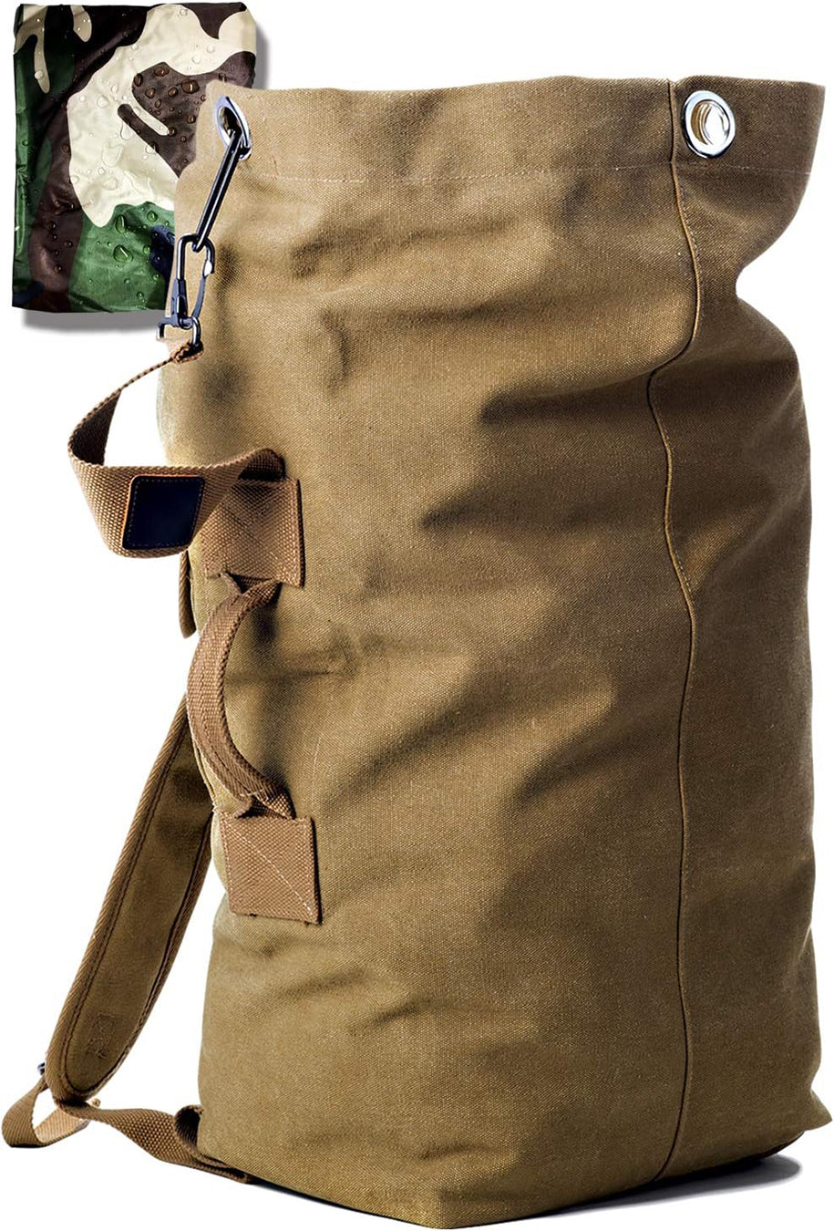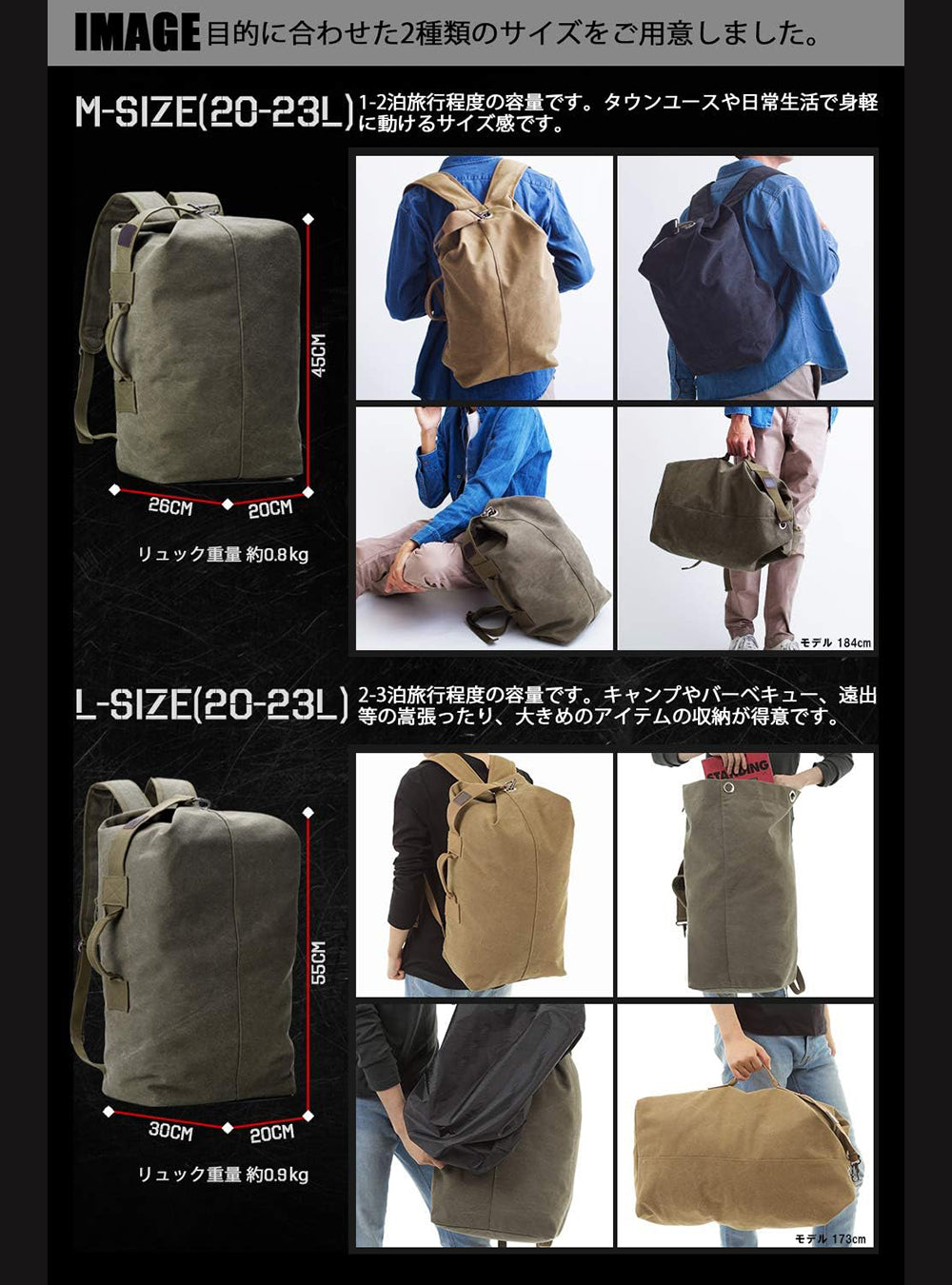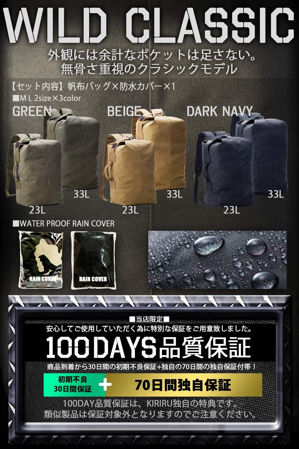 ダッフルバッグ【帆布リュック】[ 防水 レインカバー 付属/大開口式 バックパック ]キャンバス シンプル 大容量 ミリタリー アウトドア 20L 30L
