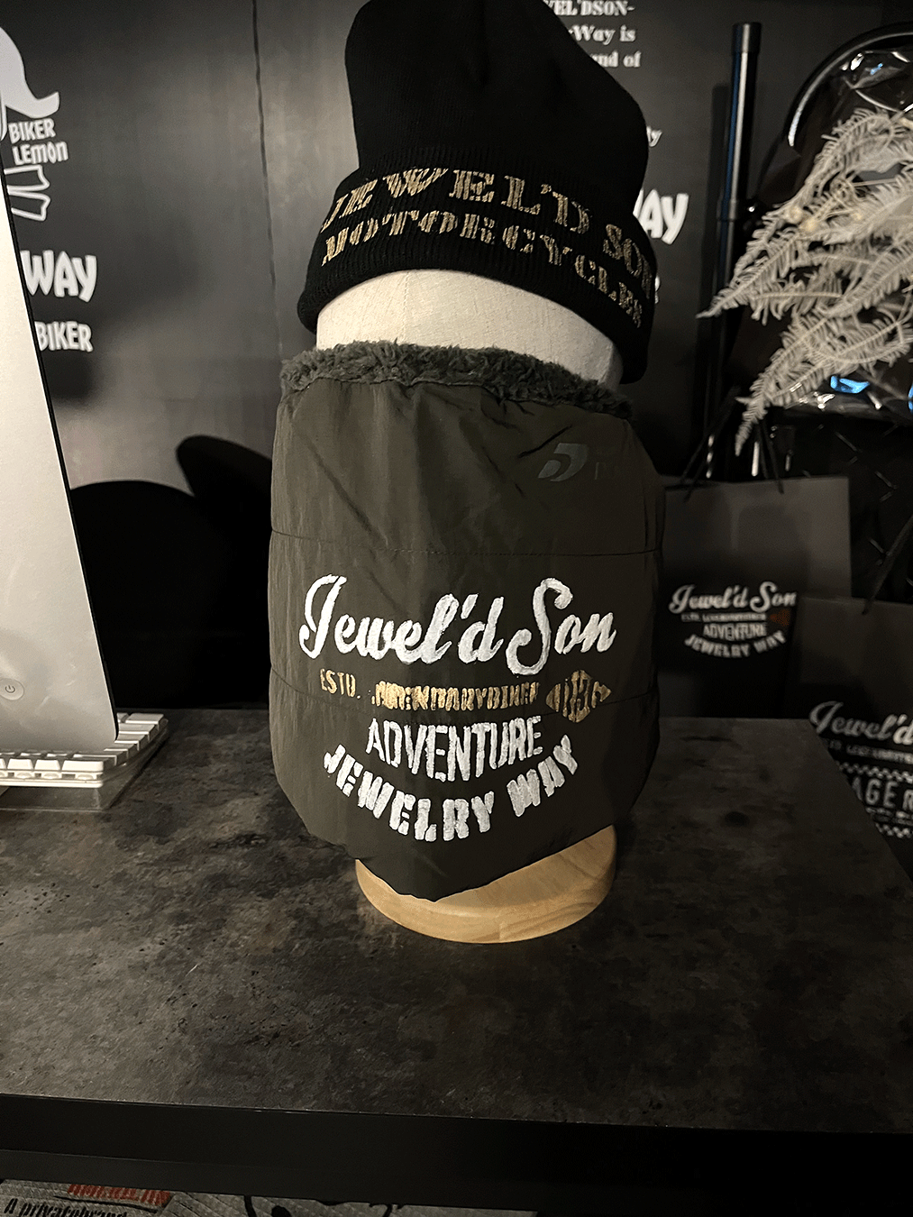 モコモコが可愛いネックウォーマー。 ロゴプリントでオシャレに仕上げました。