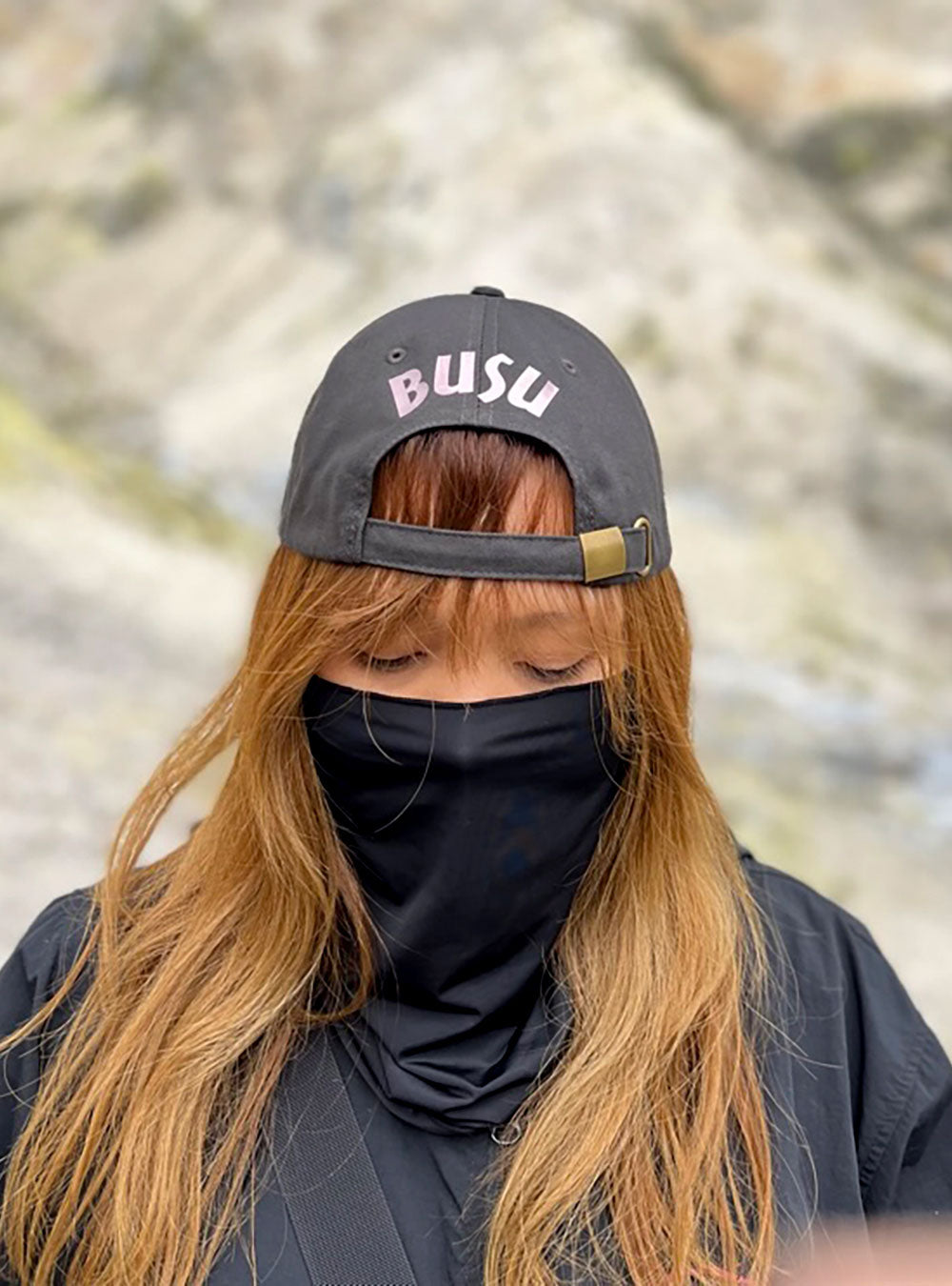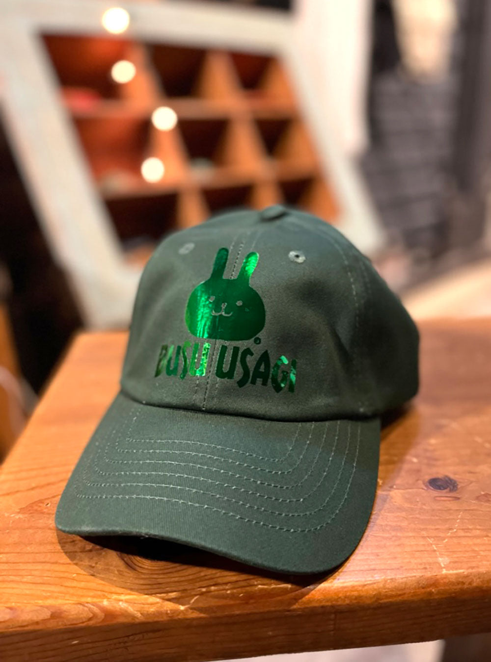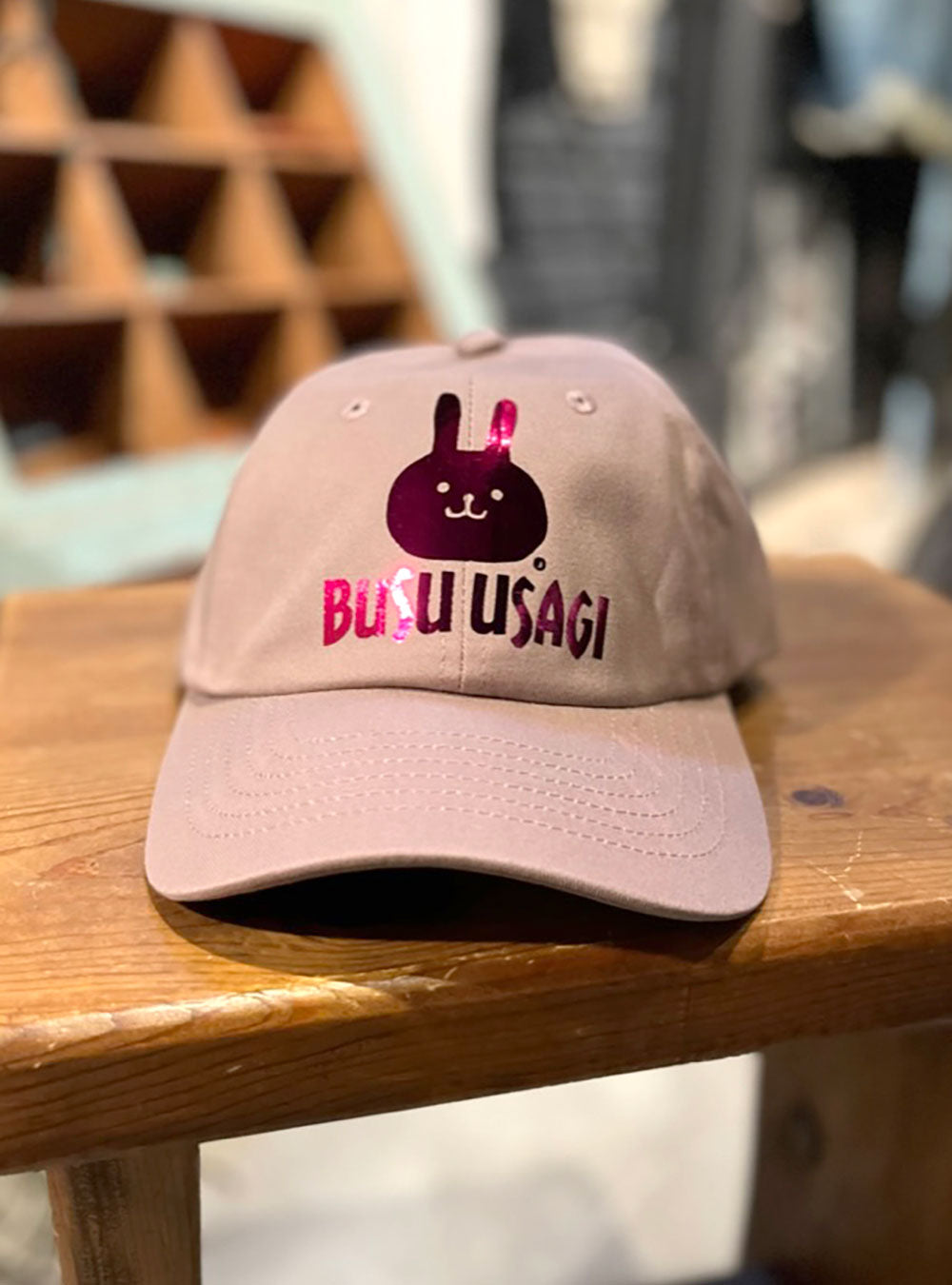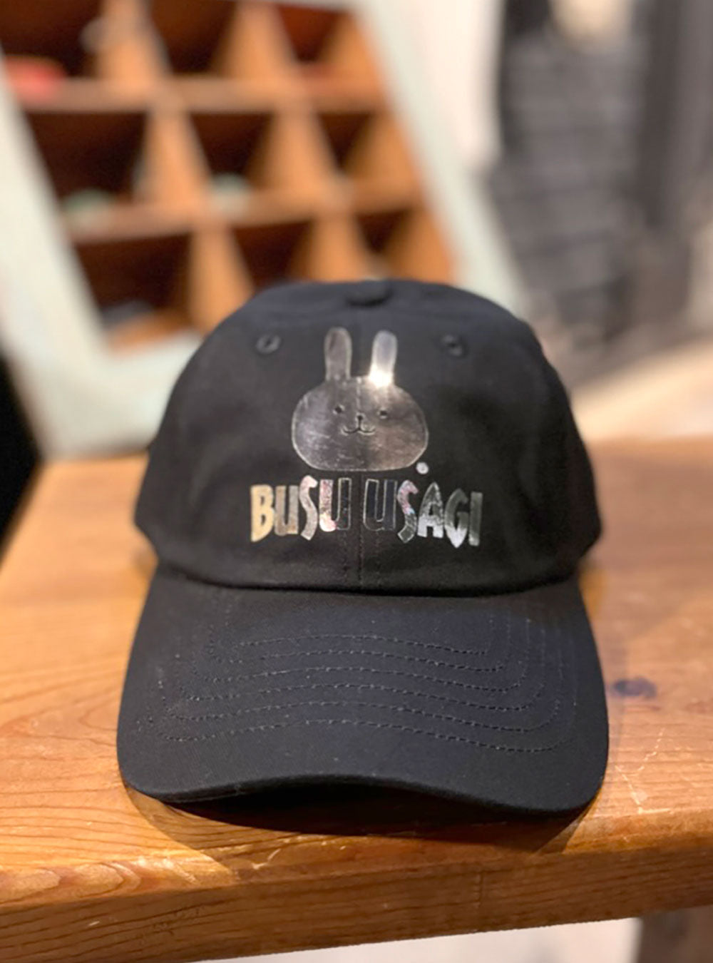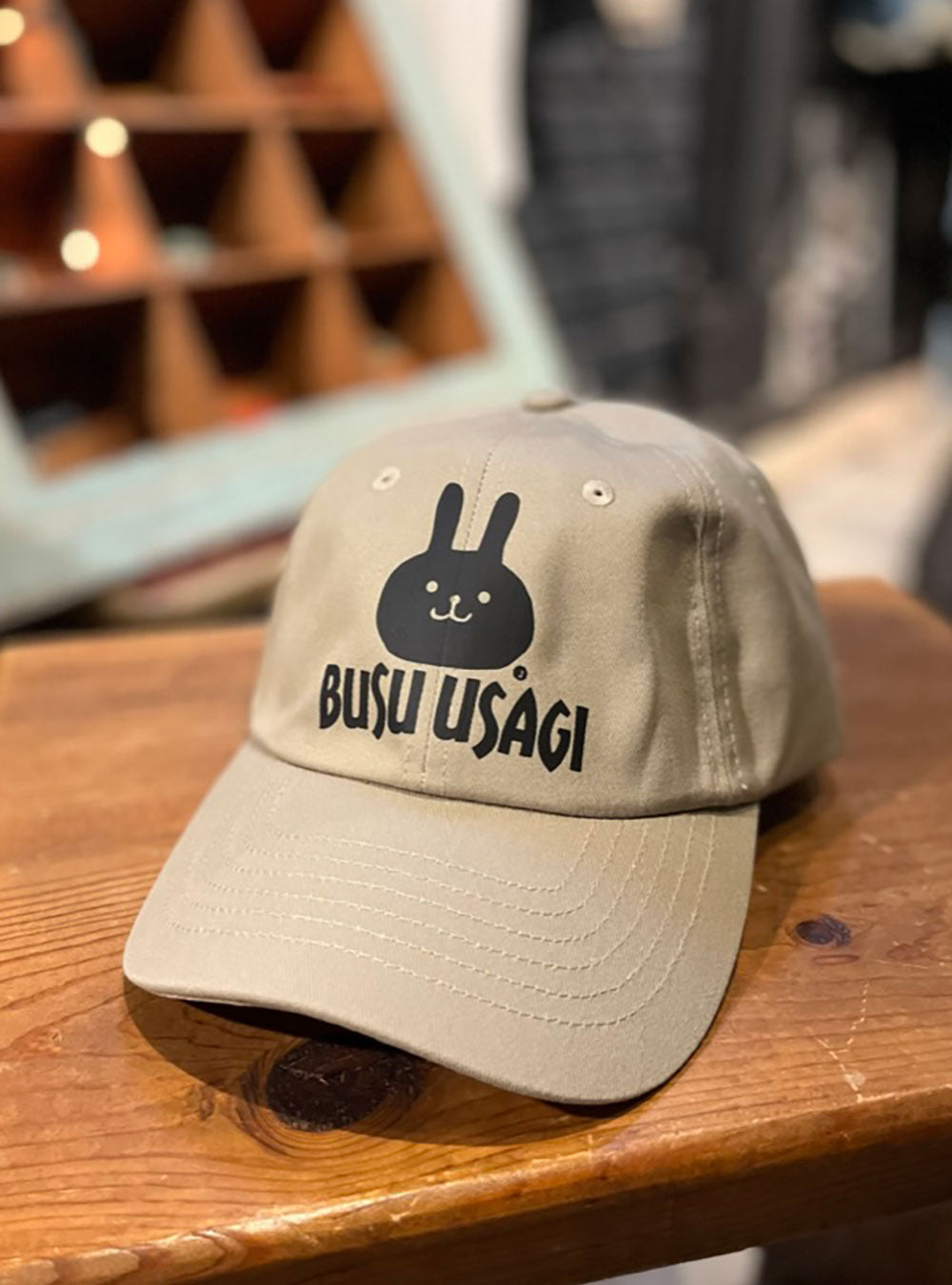 アメリカンテイストな浅めのフォルムで、男女問わず人気の定番キャップ。金属クリップアジャスター付きでサイズ調整可能なキャップ。 シンプルなうさぎのプリントにバックプリントの「BUSU」がナウイ☆*:.。.