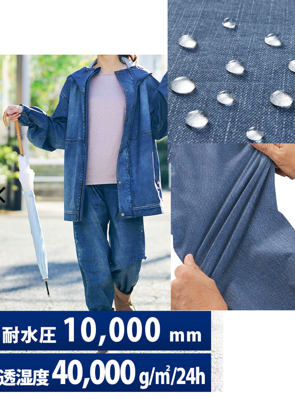 袖口は3段階調節、裾は2段階調節可能なスナップボタン付きパンツ
