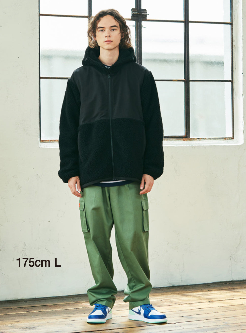 〈アウターボア(身頃・袖・フード)〉ポリエステル100%〈スウェット(切り替え部分)〉ナイロン100%〈裏地(身頃)〉ポリエステル100% パンチングメッシュ〈裏地(μ)〉ポリエステル100%タフタ