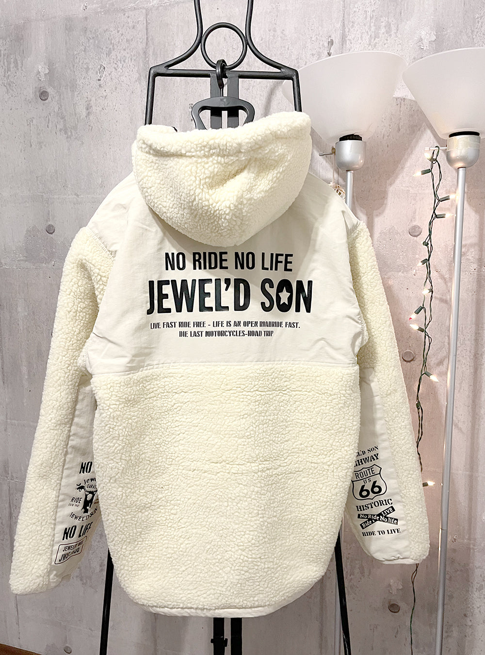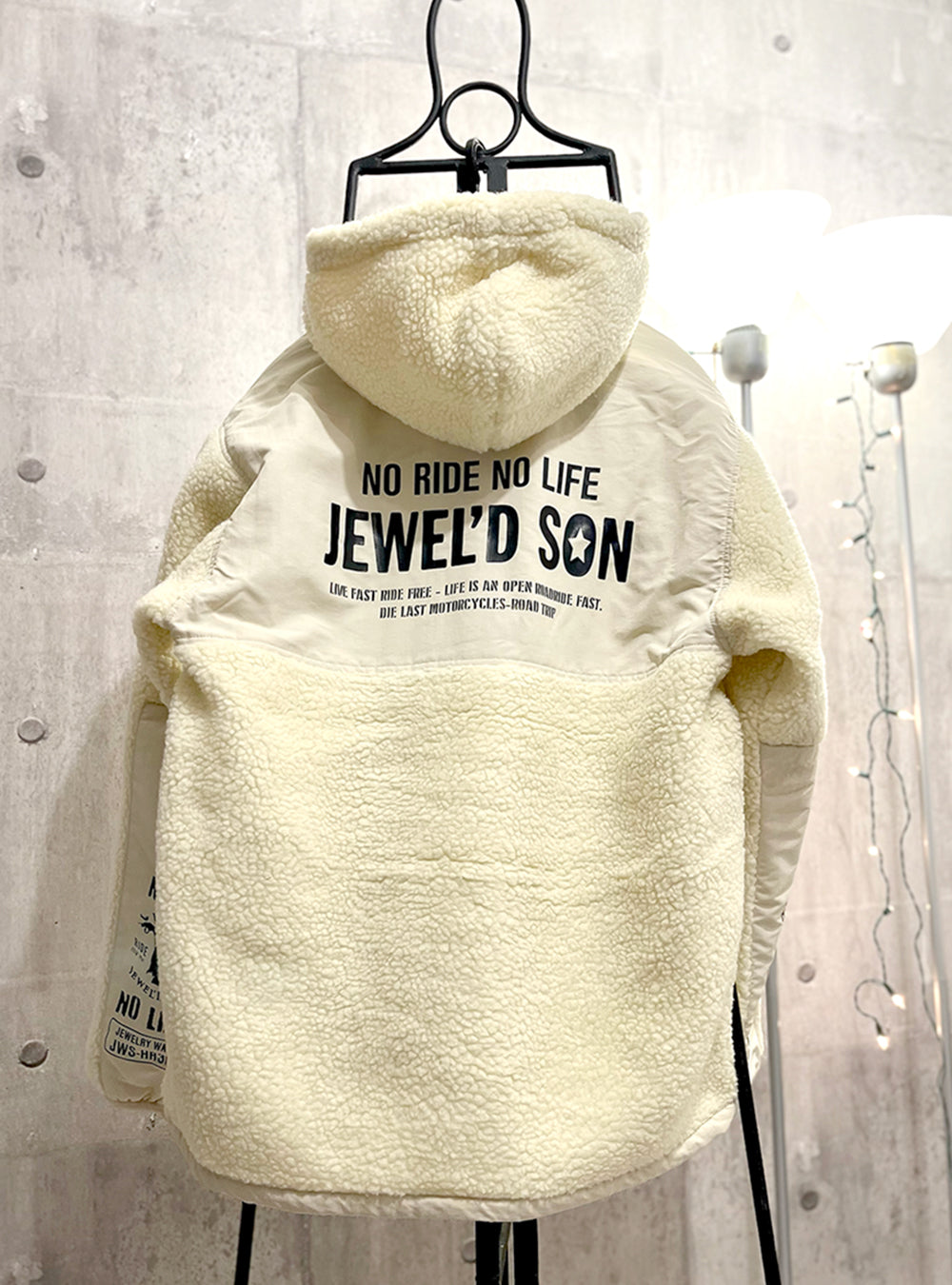 プリントデザインはステッカーをたくさん貼ったようなイメージ。バッグプリントは「JEWEL'D SON」をシンプルだけど大胆にプレス。胸には星型ロゴ。