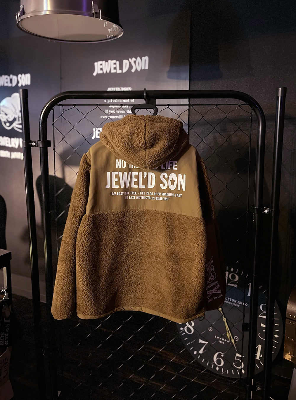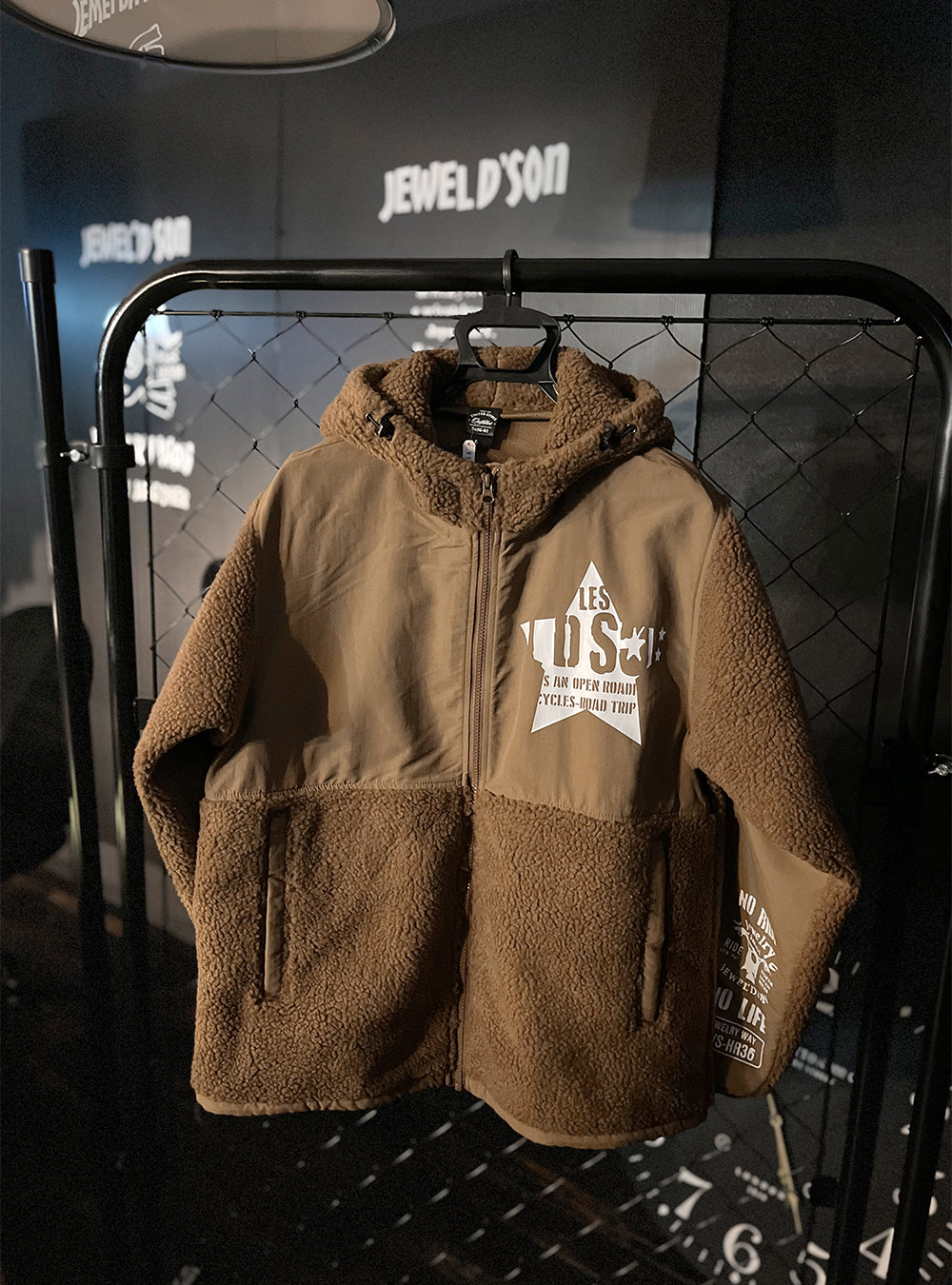 プリントデザインはステッカーをたくさん貼ったようなイメージ。バッグプリントは「JEWEL'D SON」をシンプルだけど大胆にプレス。胸には星型ロゴ。