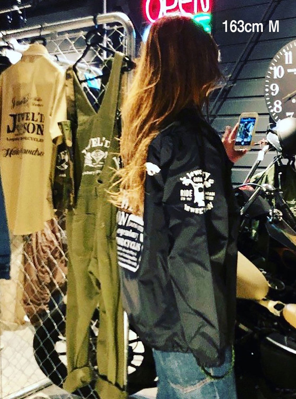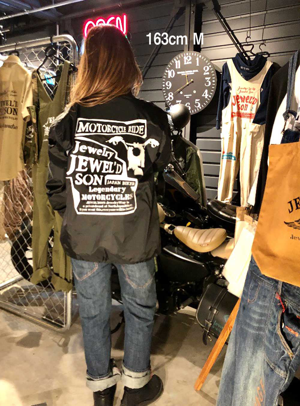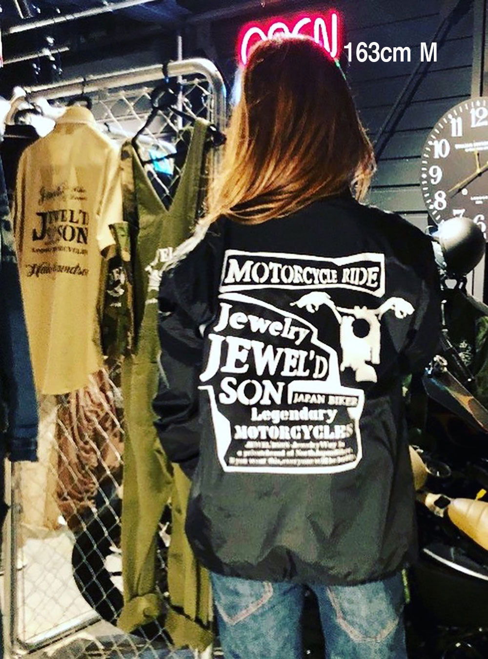 背中にはバイクシルエットをあしらった「Jewel'd son」ロゴを大胆にプリントして存在感抜群のコーチジャケットです。