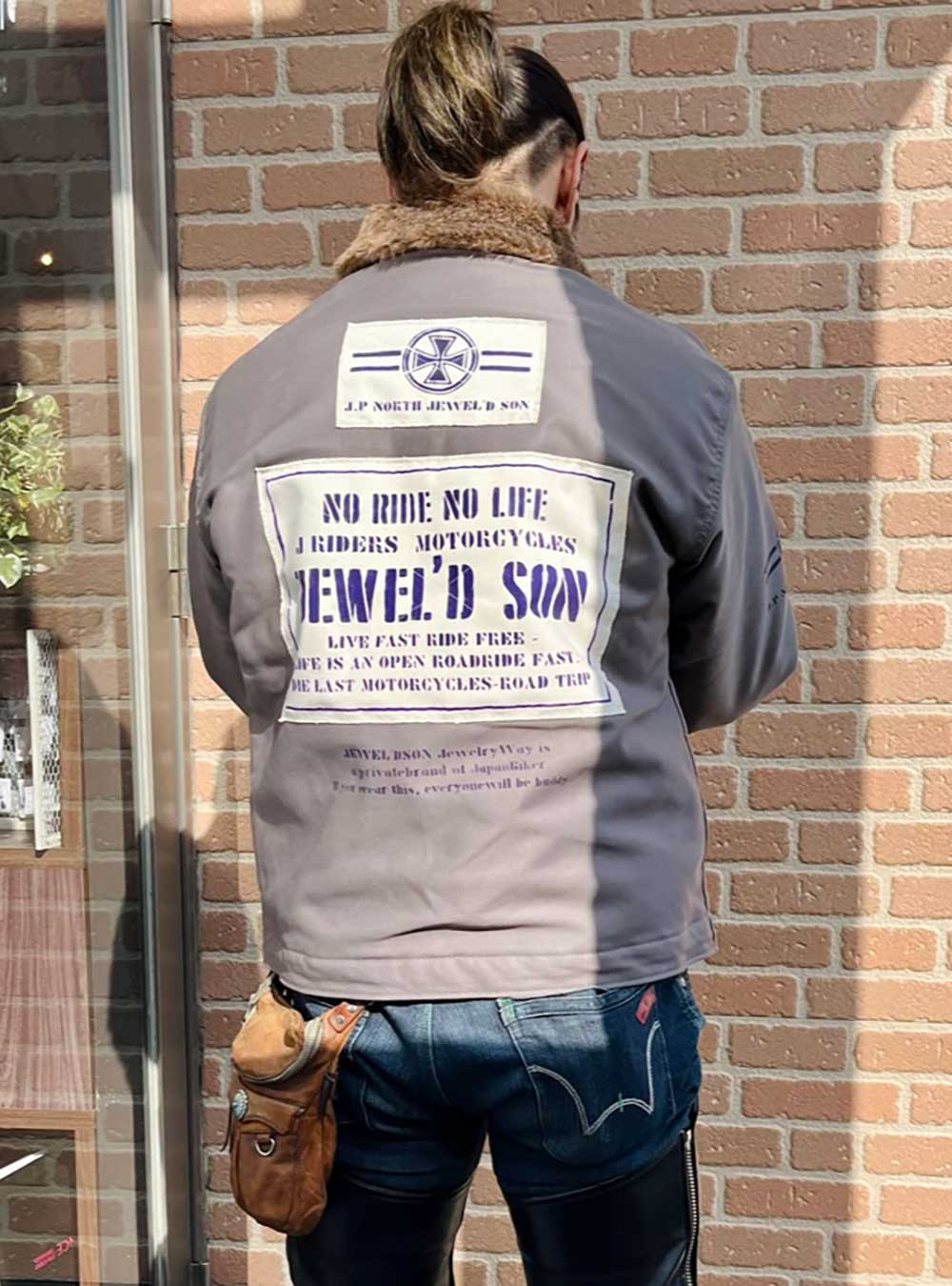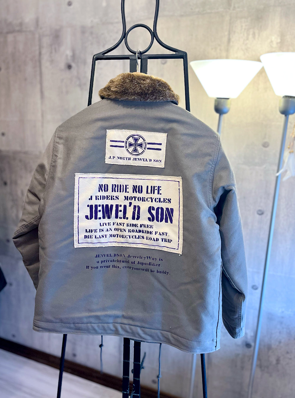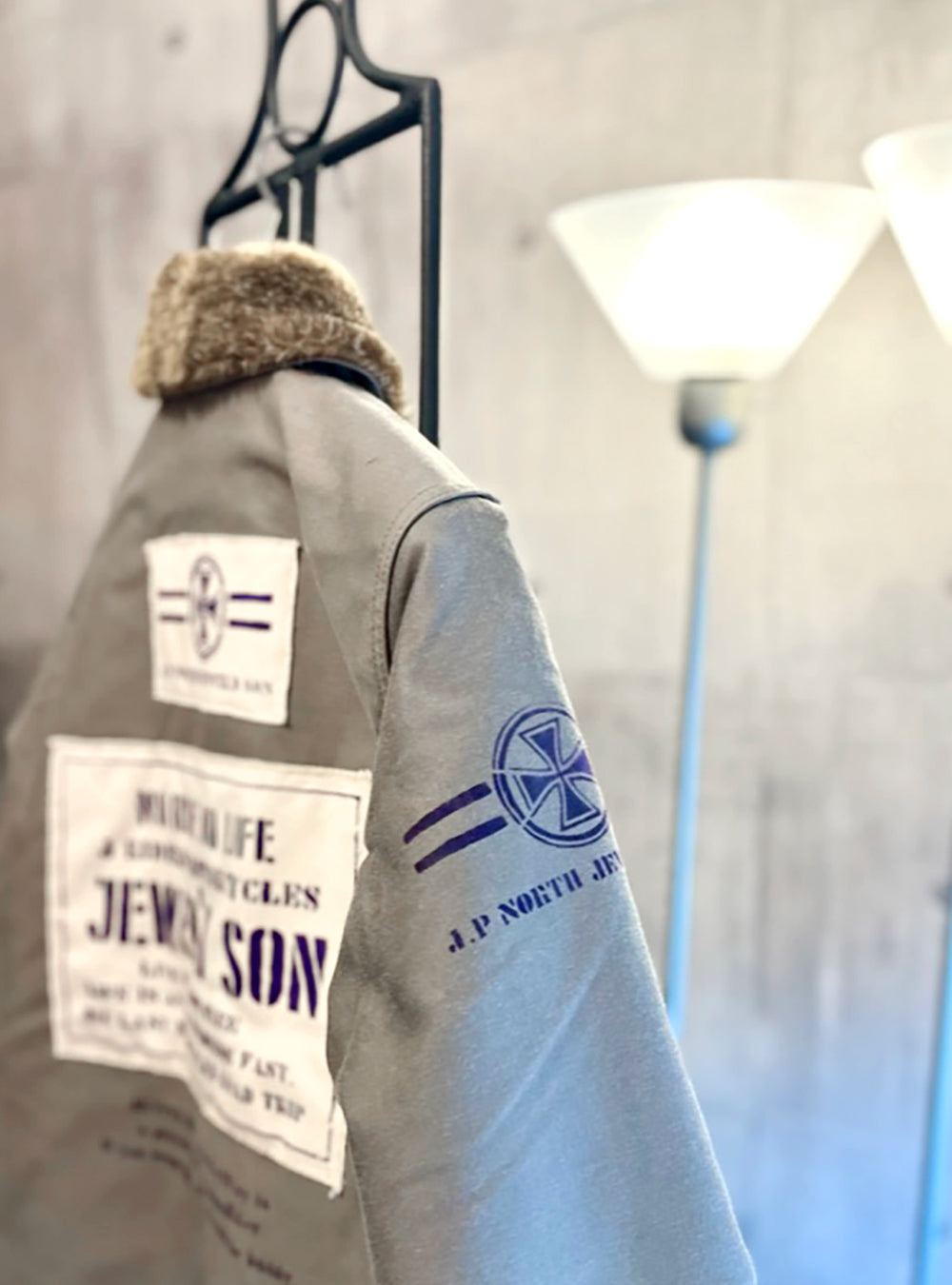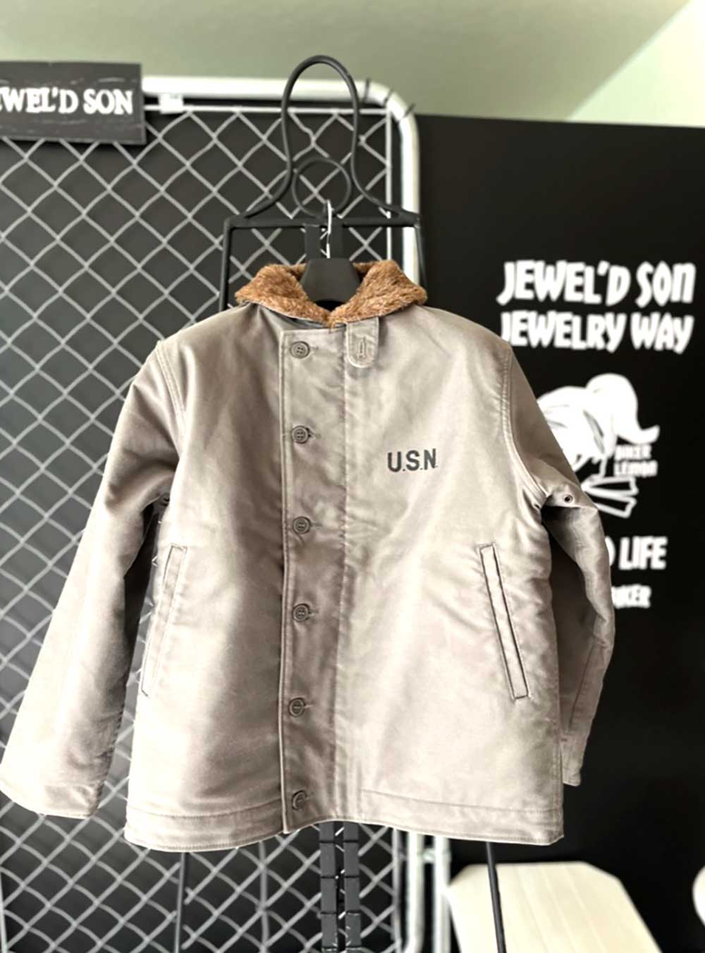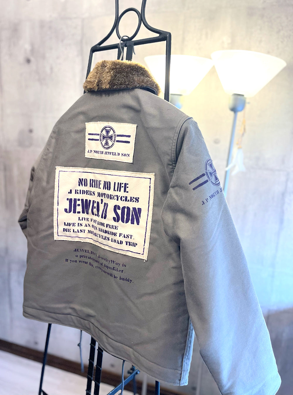 5n-1 N-1 DECK JACKET -正規モデル-/N-1 デッキジャケット 正規モデルブランド帆布にネイビーで「Jewel'd Son」シンプルをステンシルしてデッキジャケットに縫い付けまし