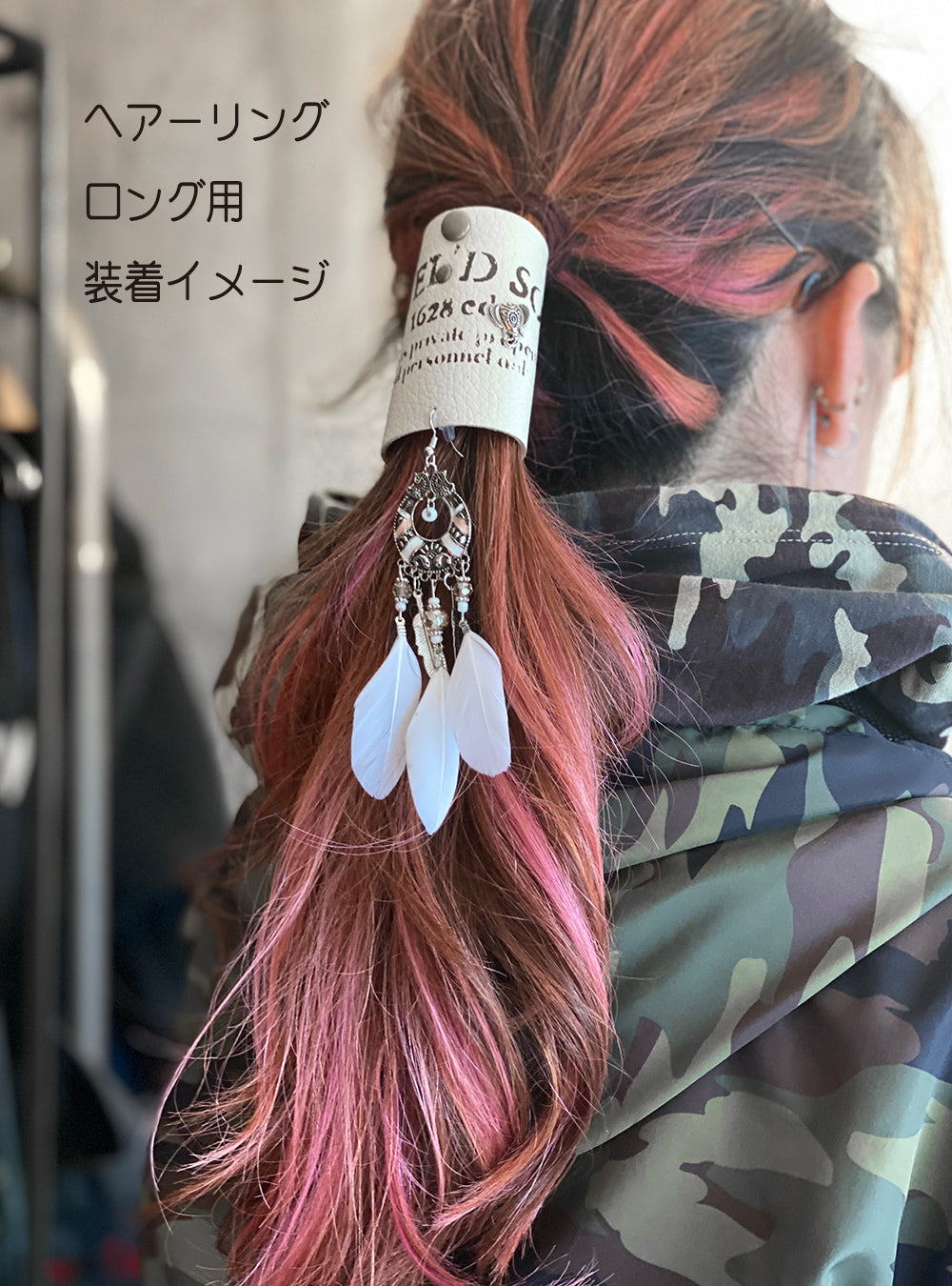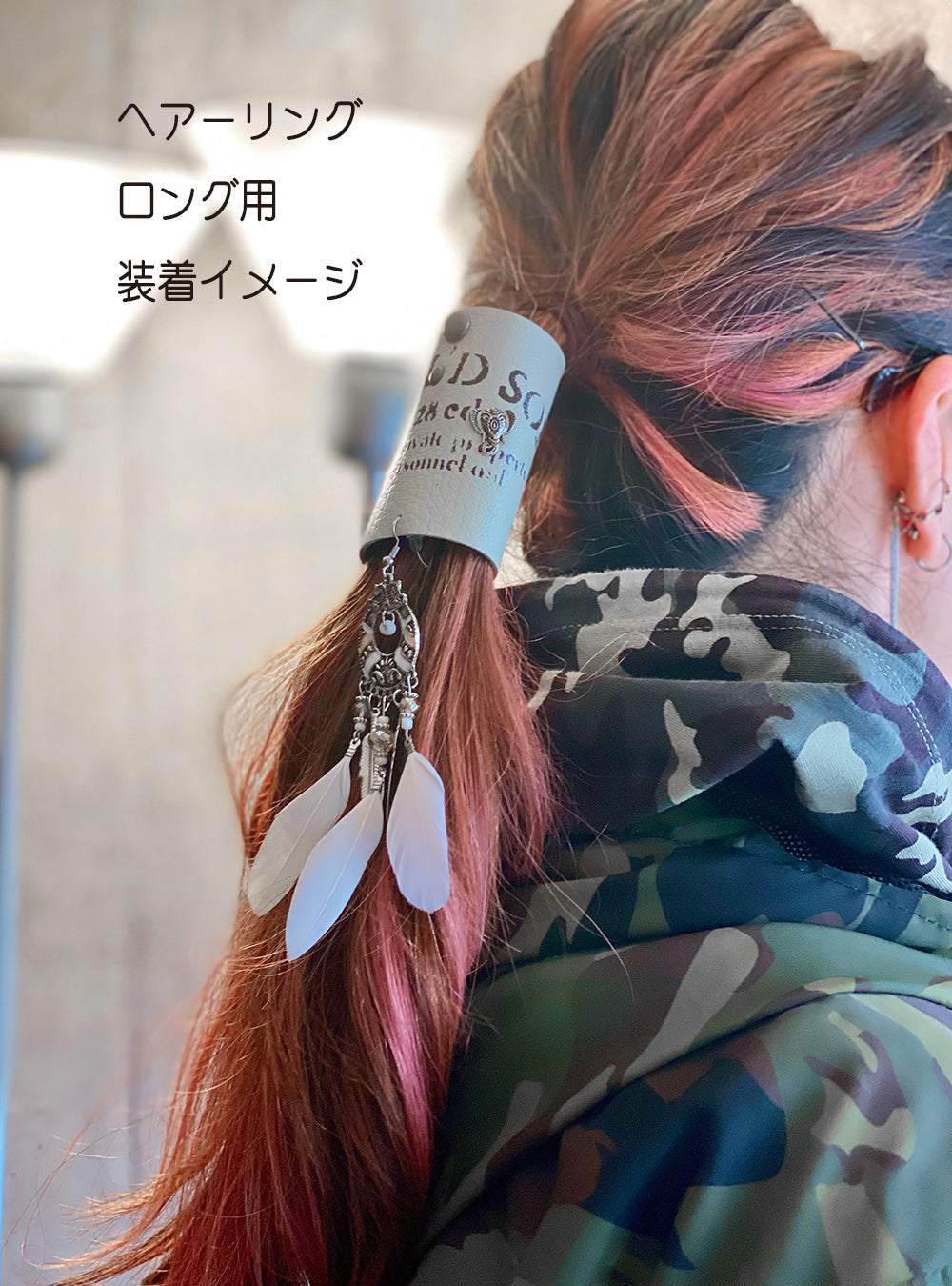 髪の毛に装着は、フックではなくヘアゴムで結ぶので、バイクでも安心! ゴム交換も簡単です。