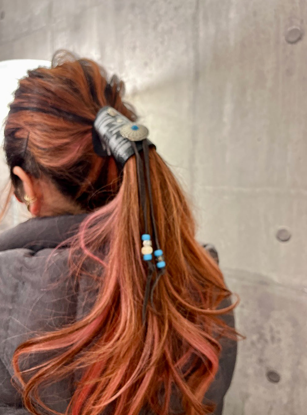 Blackレザー【コンチョ飾りヘアーリング】BLUE