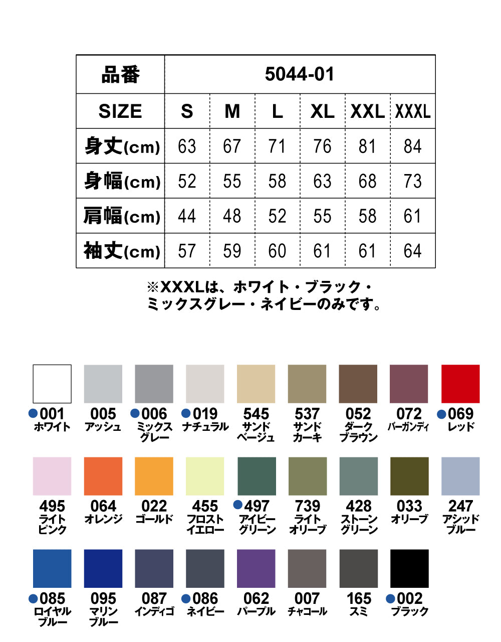 スエットはサイズ表よりカラーもお選びいただけます
