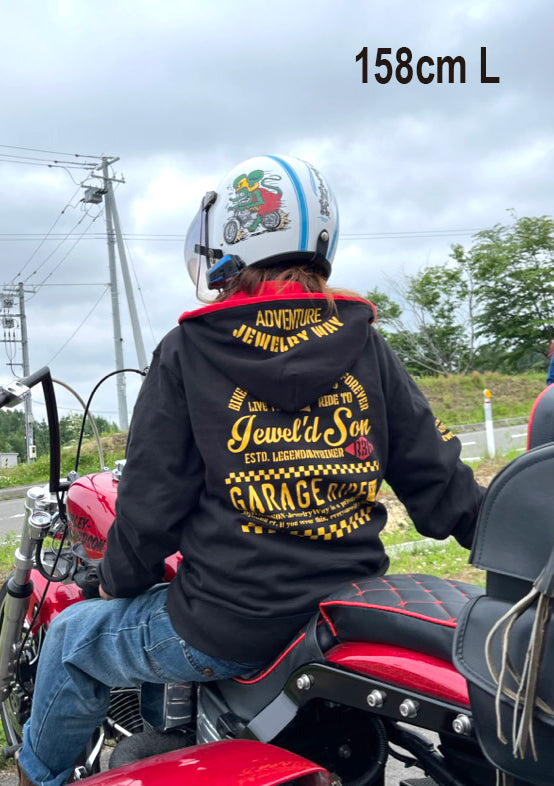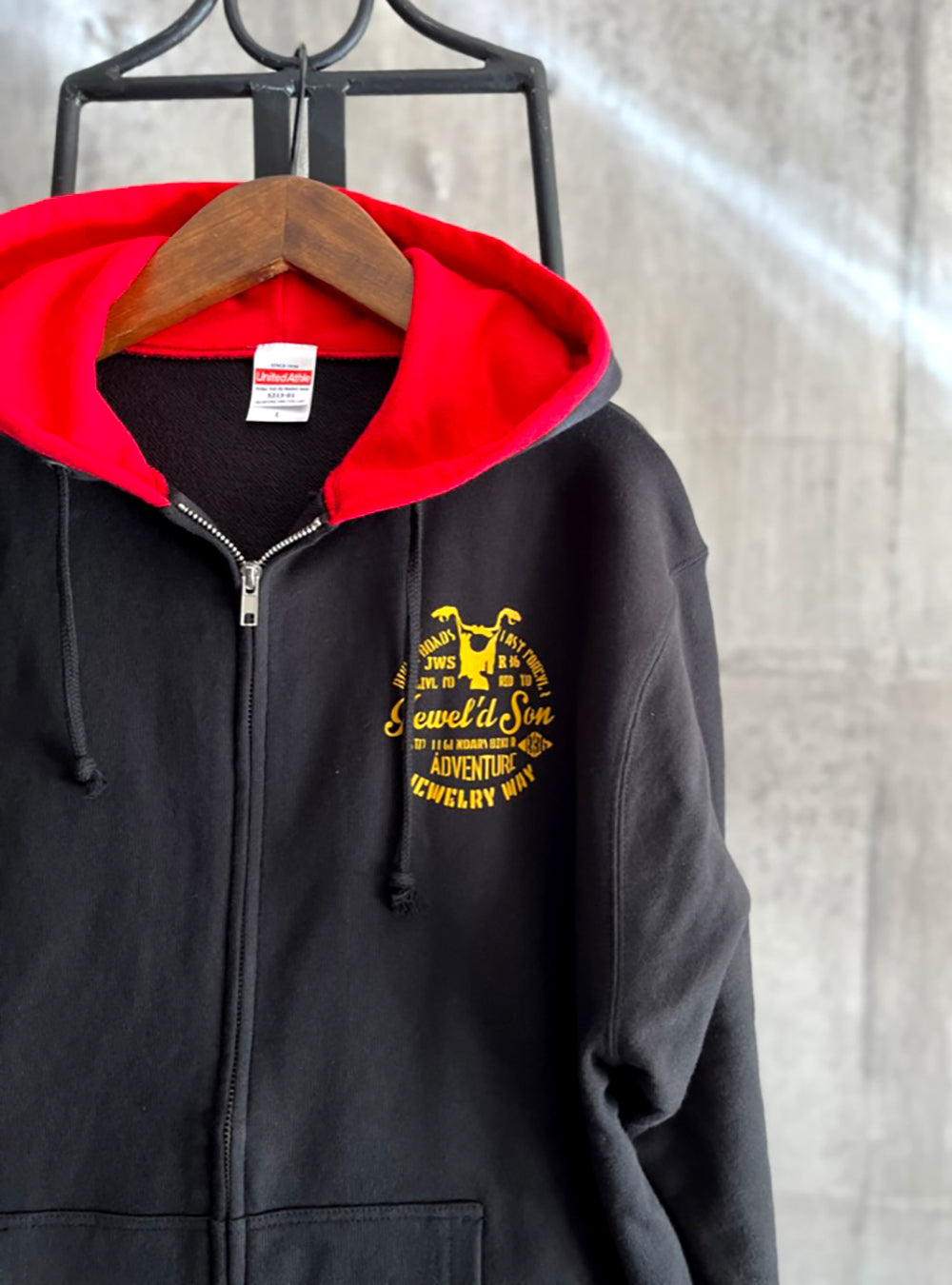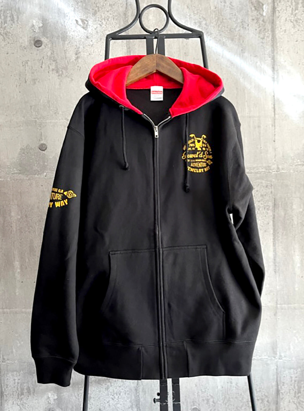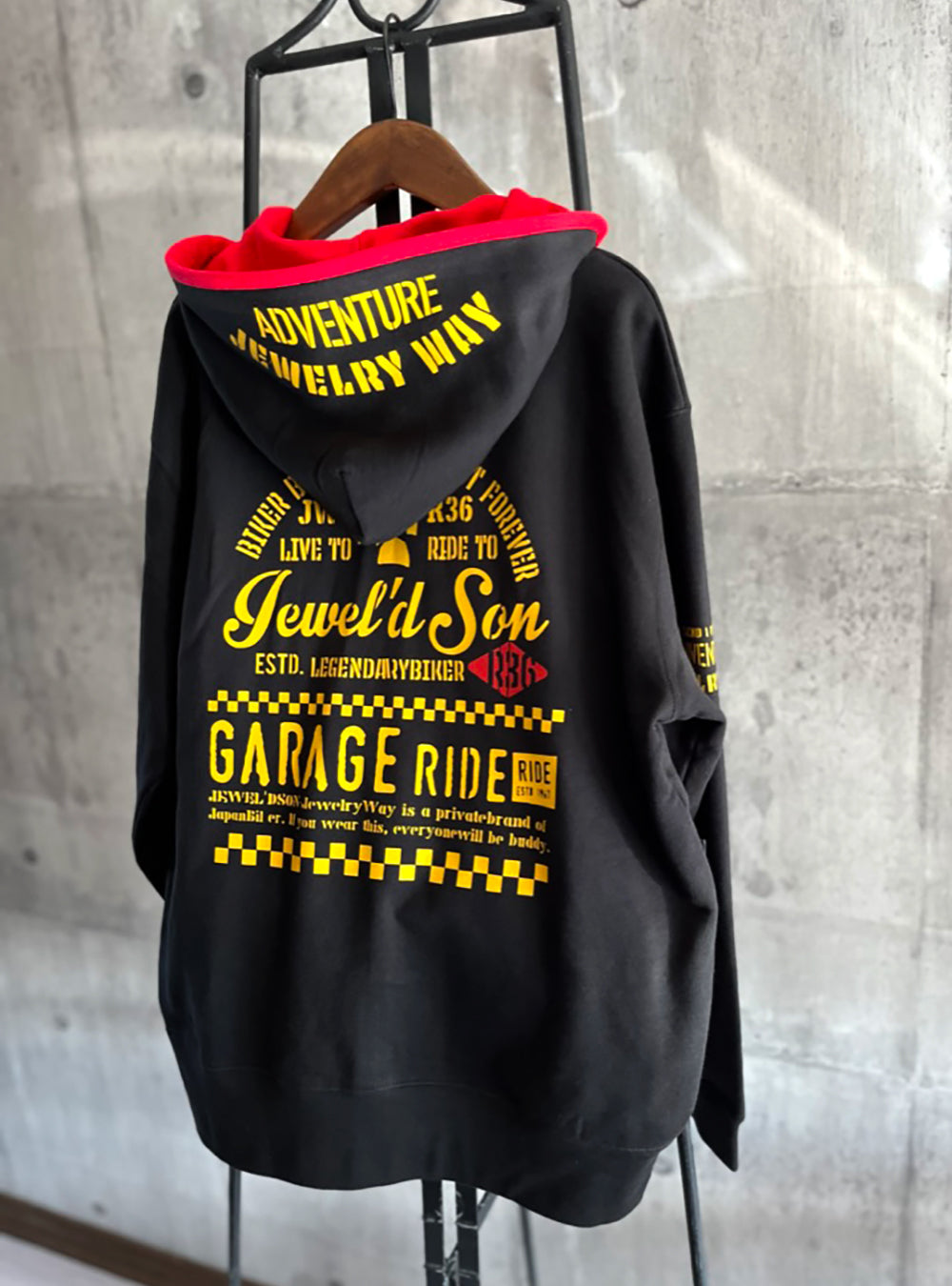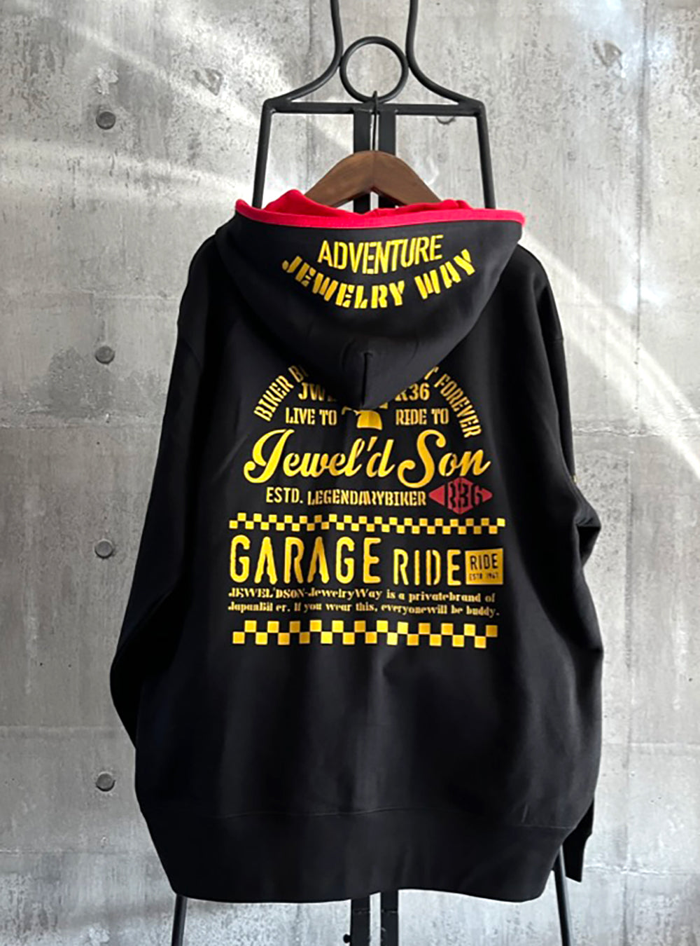 フードの赤と黄色のプリントがインパクトの抜群のフーディー。 チェッカーフラッグをイメージしたデザインです。着る人のスタイルにアクセントをプラス! 10.0オンスでしっかりとした素材のパーカーです。フルジップとプルオーバー(かぶりタイプ)からもお選びいただけます。