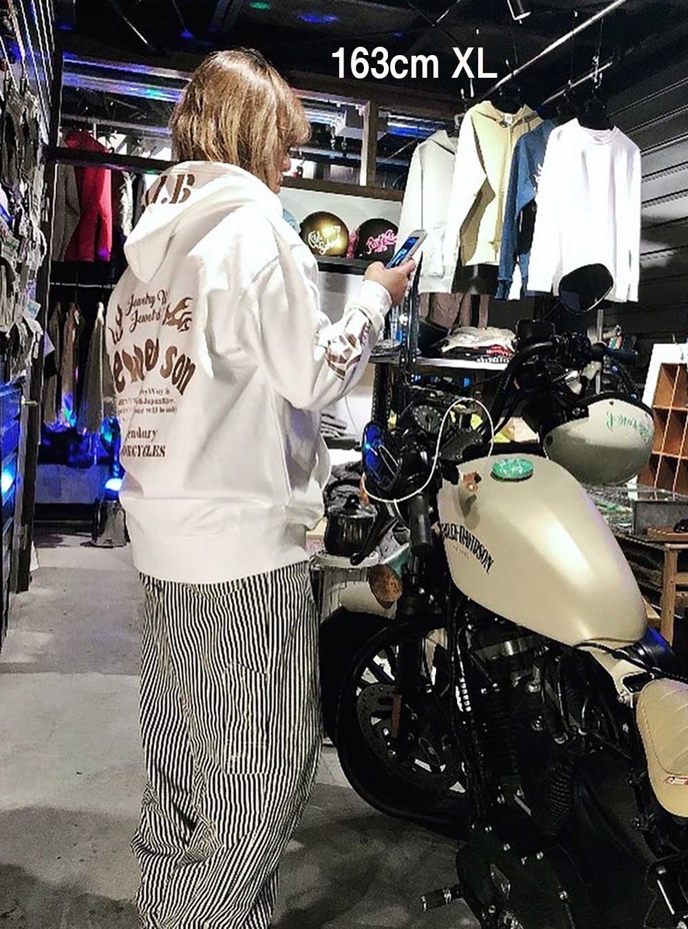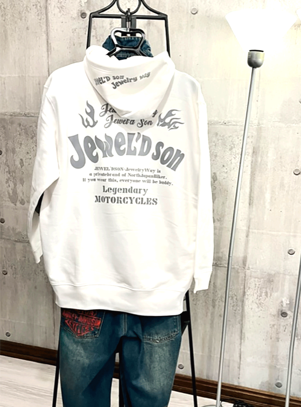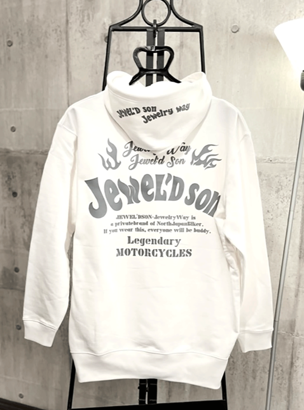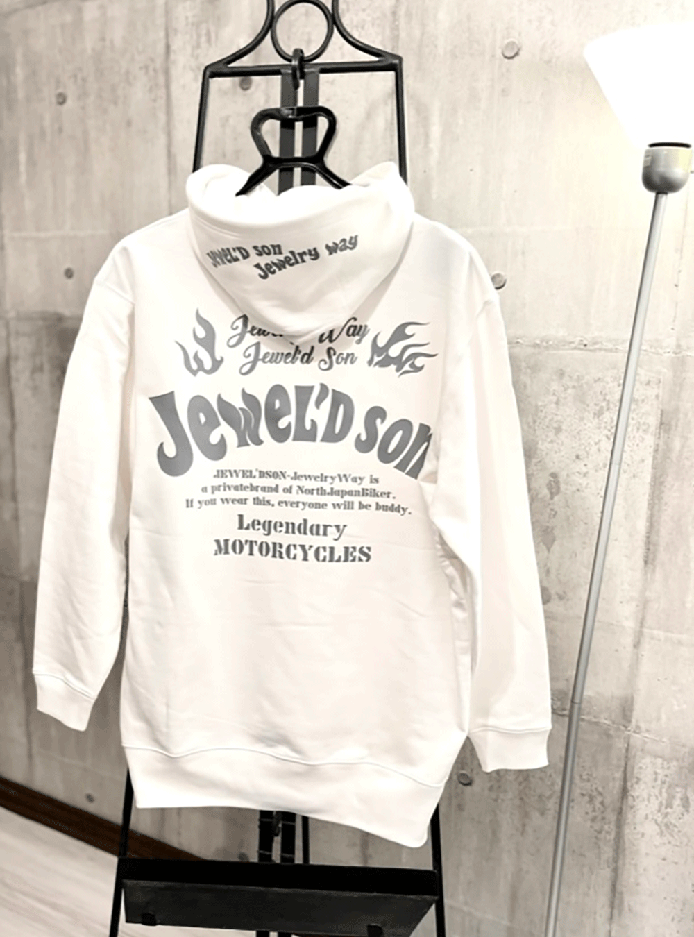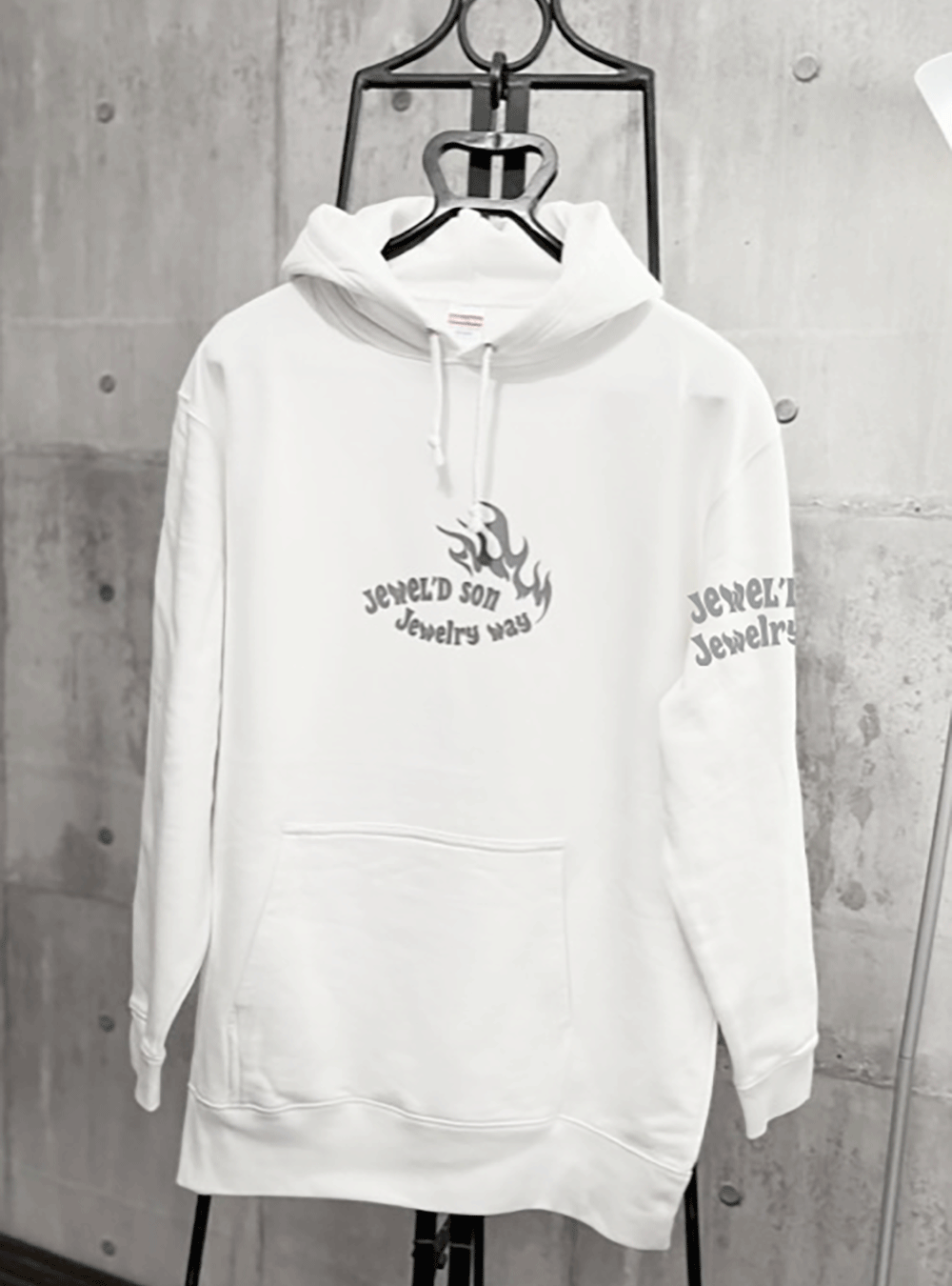 白のパーカーにグレーのプリントのオシャレなパーカーできました!フードはシンプルにプリント。白好きにはたまらない落ち着いた色合いです。10.0オンスでしっかりとした素材のパーカーです。フルジップとプルオーバー(かぶりタイプ)からもお選び頂けます。