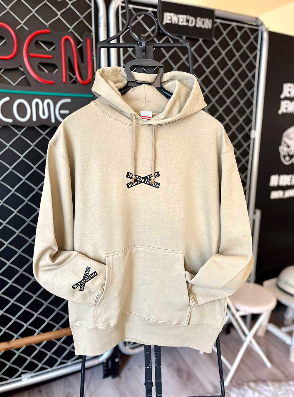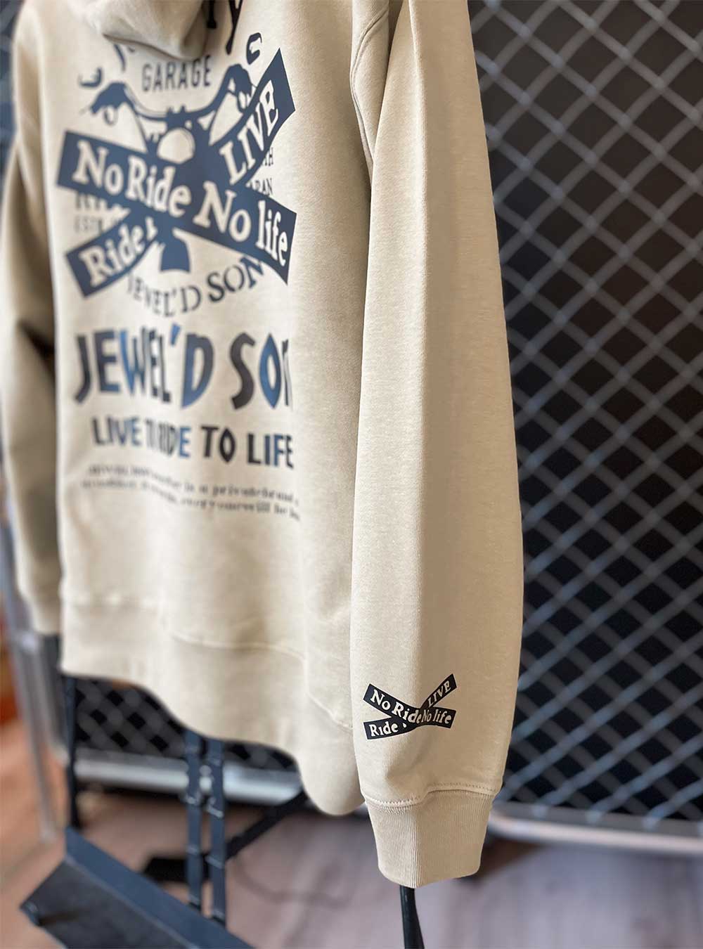 万能アイテムパーカー。あらゆるシーンで活躍するパーカーにバイクシルエットとクロスが印象的なデザインをしました。ジップ(チャック)とプルオーバーが選べます。10.0オンスでしっかりした素材のパーカーです。