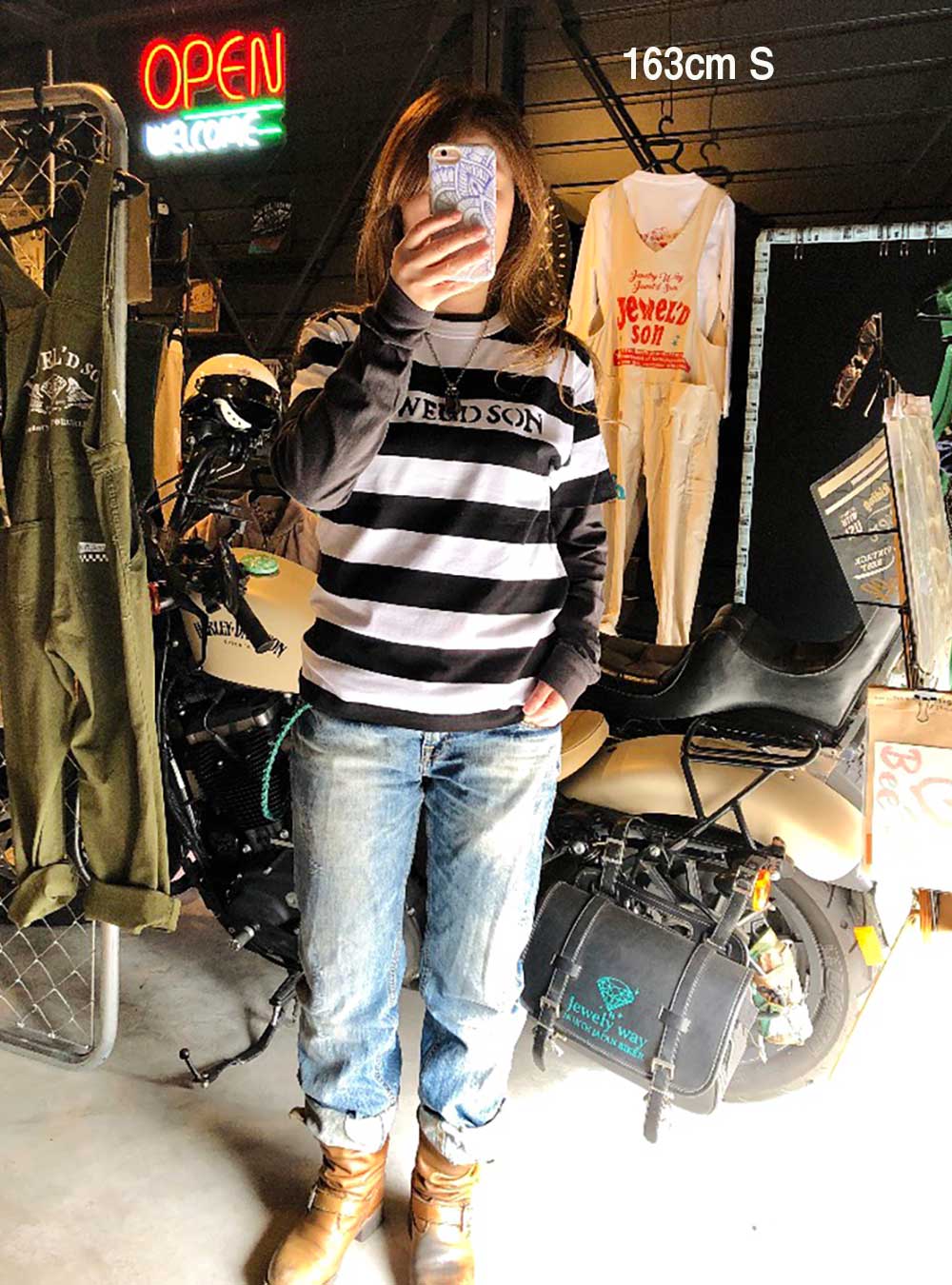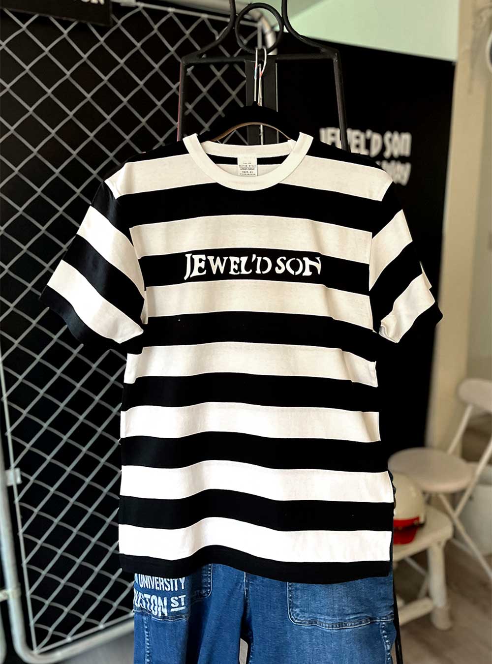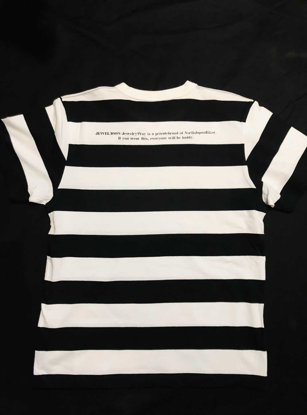 存在感抜群5cmピッチのボーダーTシャツにシンプルなロゴのプリント。