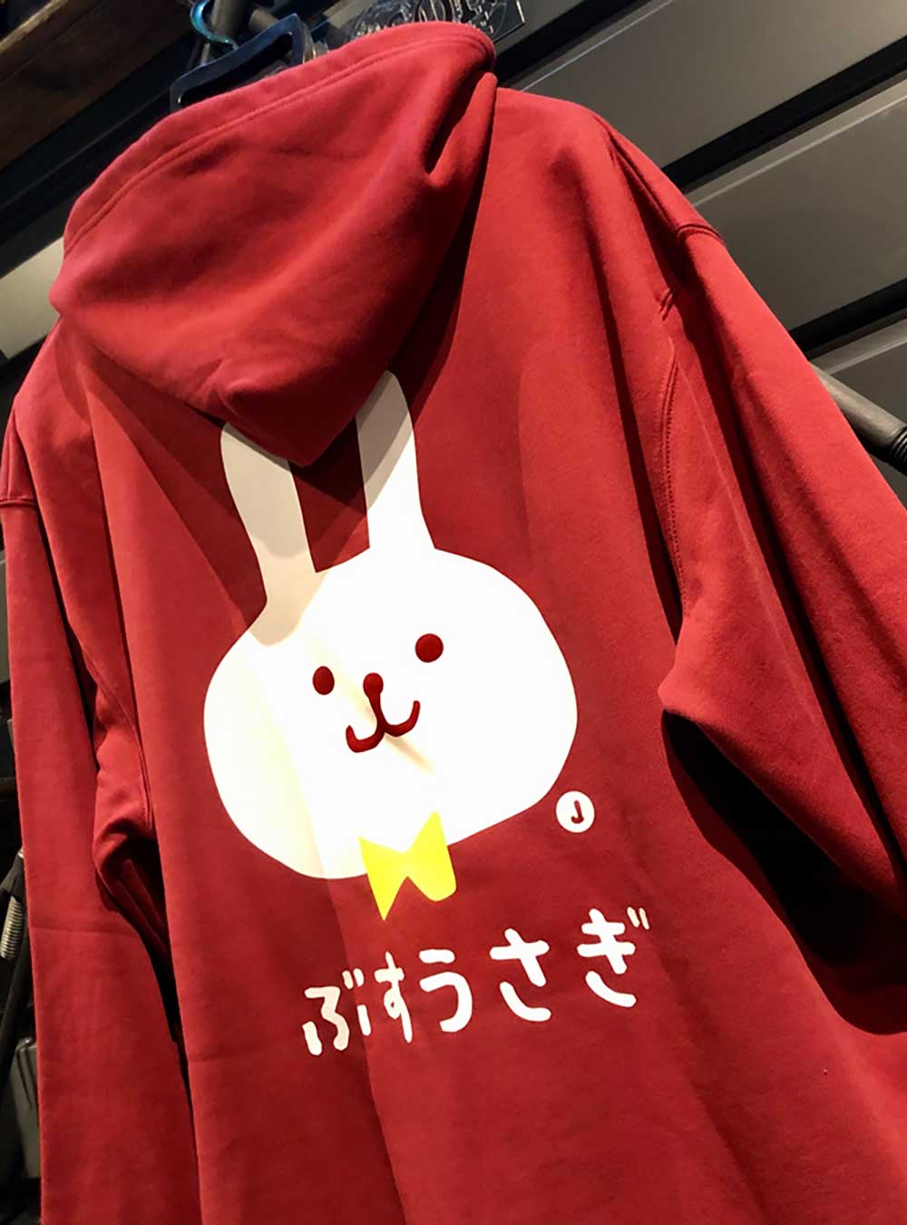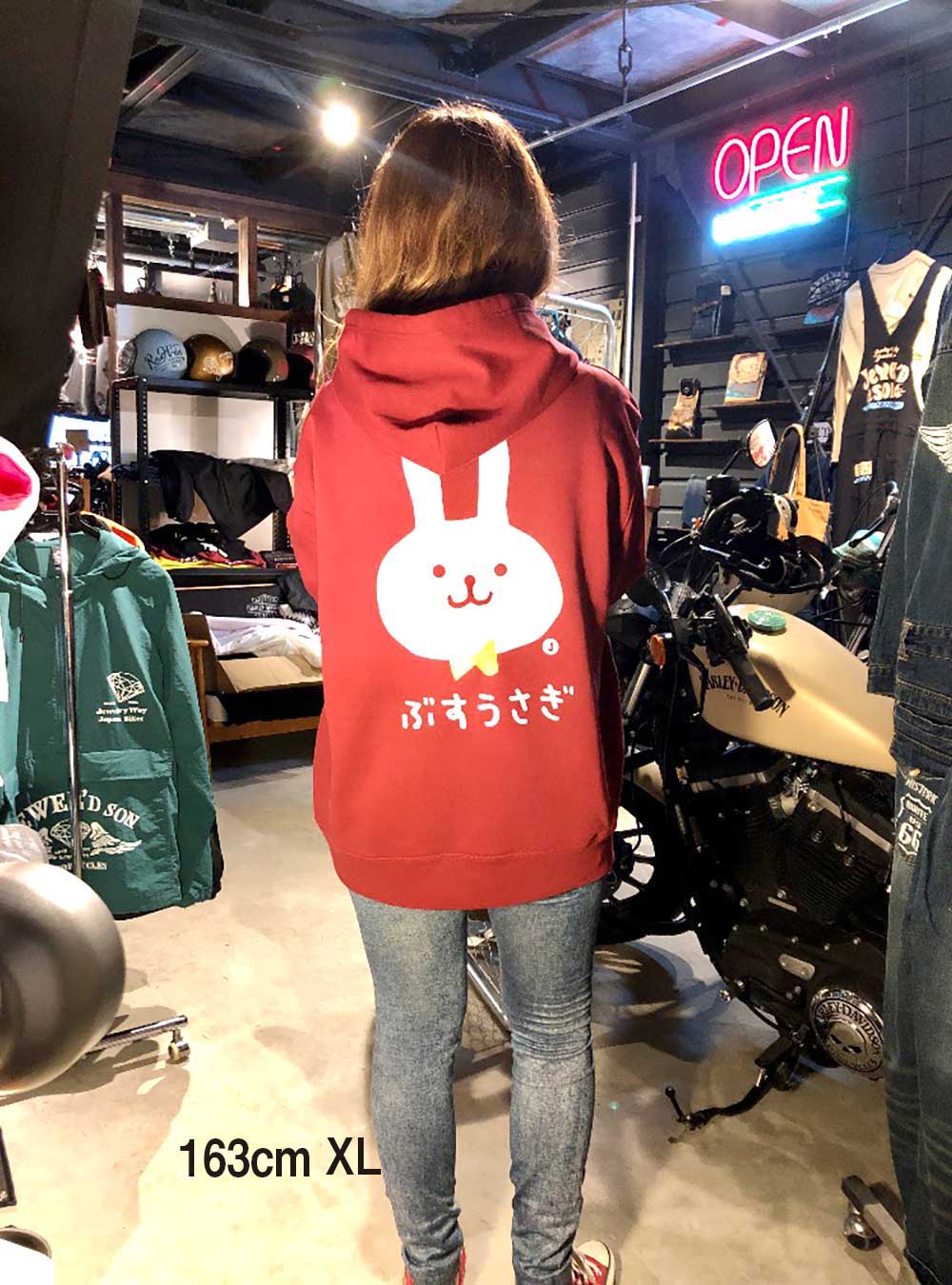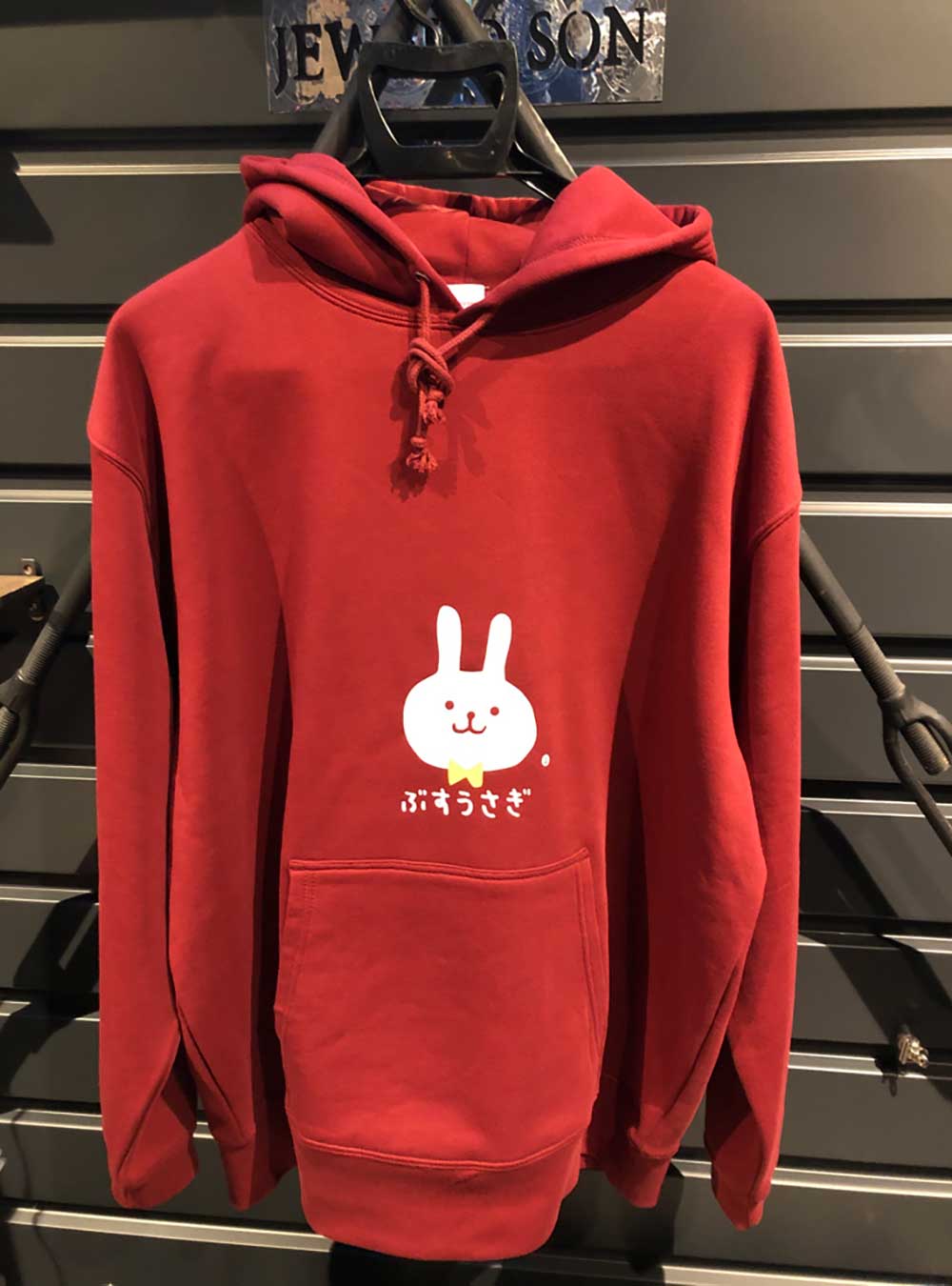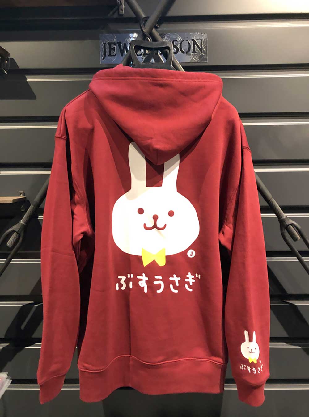パーカーにジュエルソンキャラ、「ぶすうさぎ」をシンプルにプリント。お子様はもちろん、ヤングからシニアまで楽しく着用できるパーカー。10.0オンスでしっかりした素材のパーカーです。フルジップとプルオーバー(かぶりタイプ)選べます。
