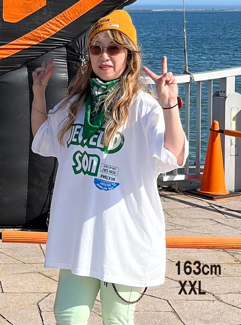 厚めの素材のTシャツにJEWEL'D SONのPOPロゴを大胆にあしらったオーバーサイズで着るTシャツ。 ゆるっとしたシルエットが今っぽく、ストリートにもカジュアルにもマッチ。 ユニセックスで着られるので、男女問わずおすすめの一枚です。