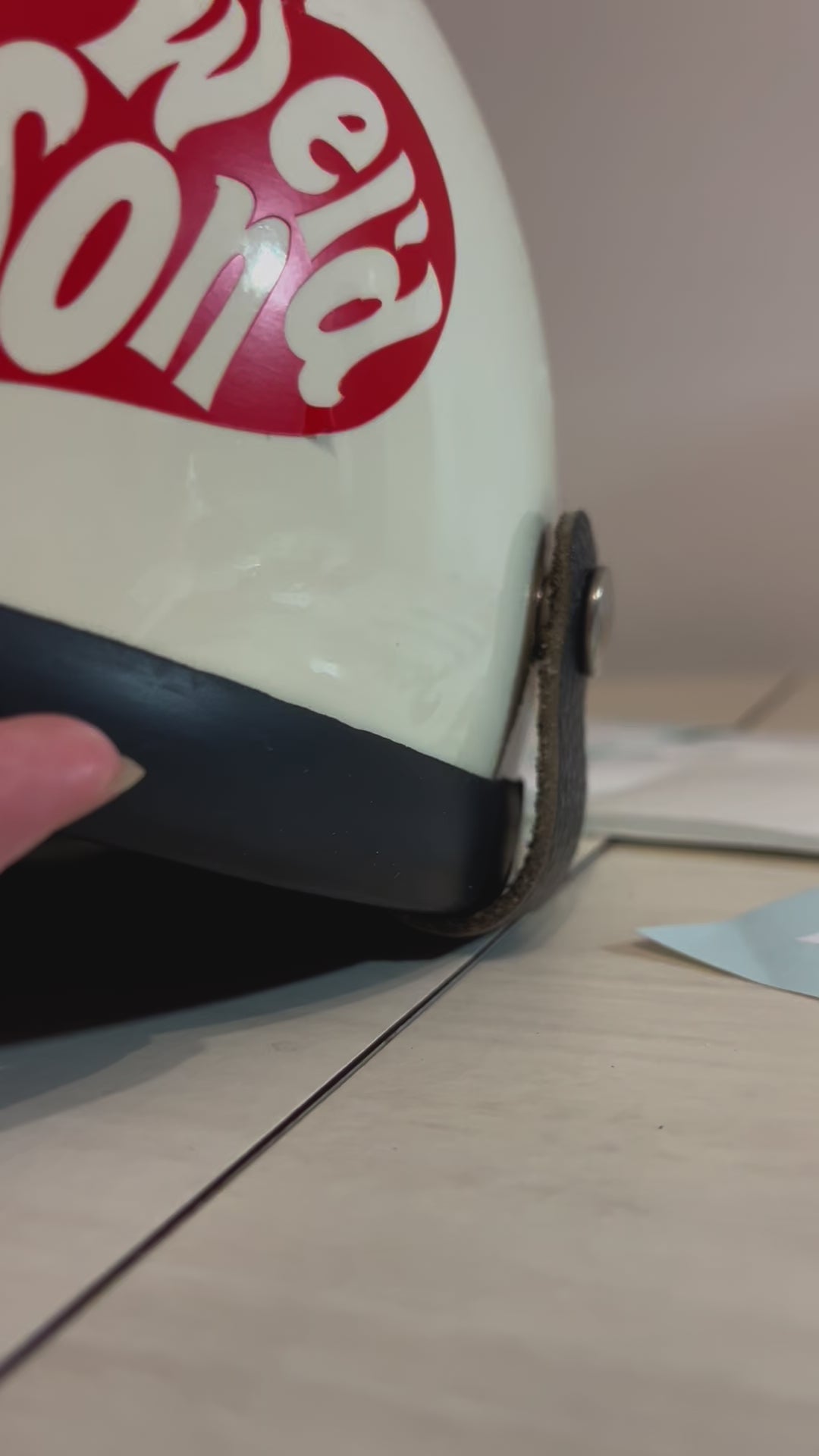 大きい方のハートは円孔のヘルメットに貼るとシワがよりますので切り目を入れるとシワが目立つずらく貼られます。