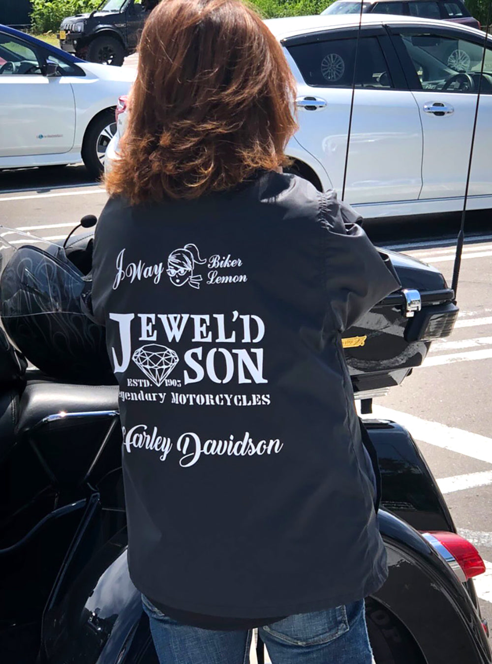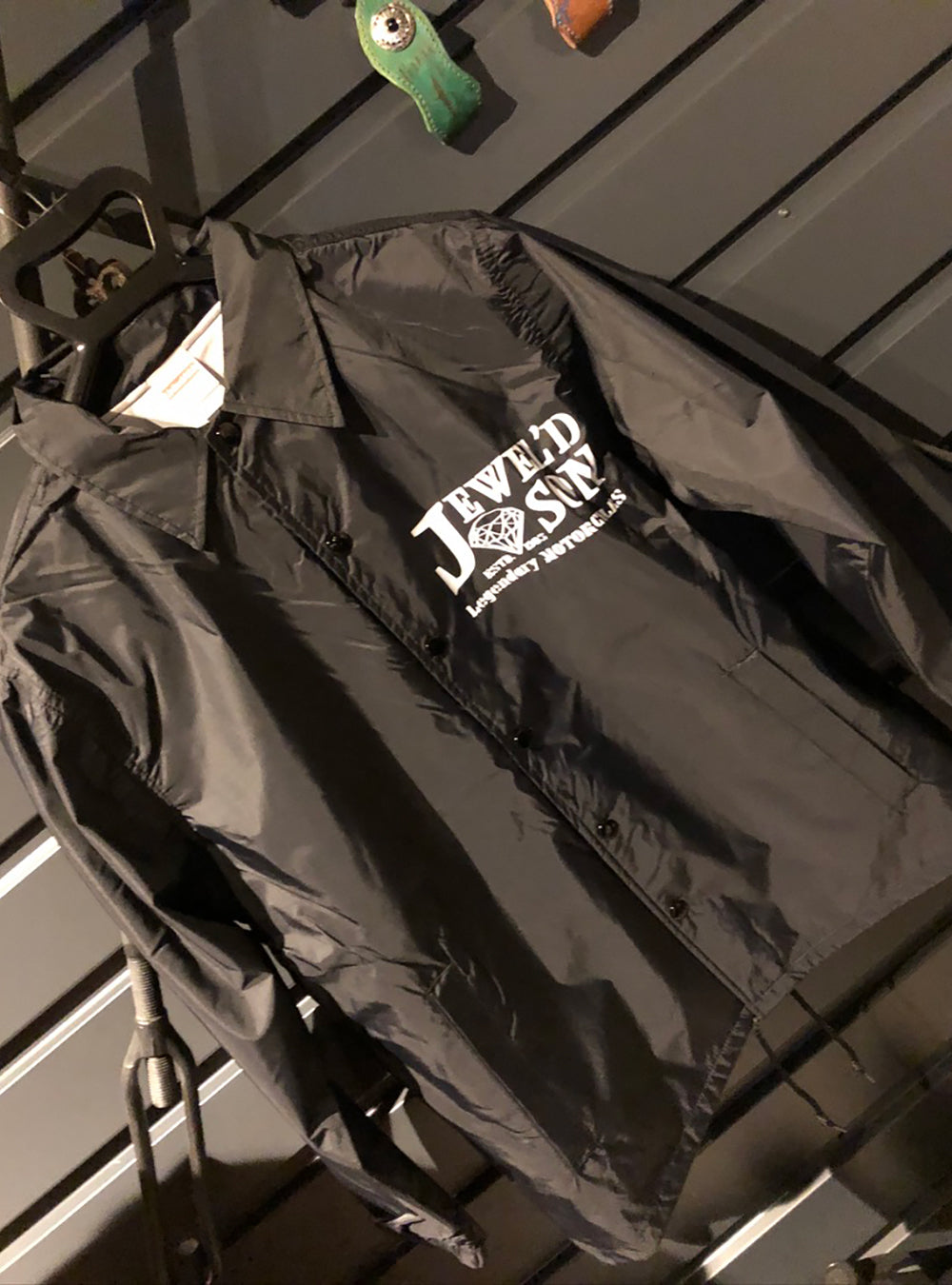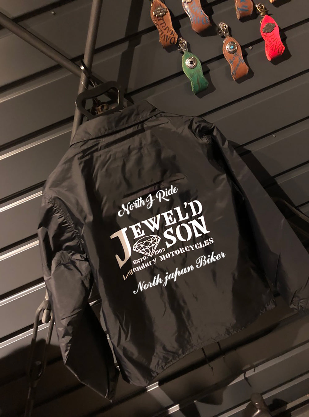 シンプルかつ定番スタイルのコーチジャケット。Jewel'd son TextDesignをロゴをプリントしました。 ナイロン素材ですので風を通さないのでバイクや屋外の時の着用にも最適。