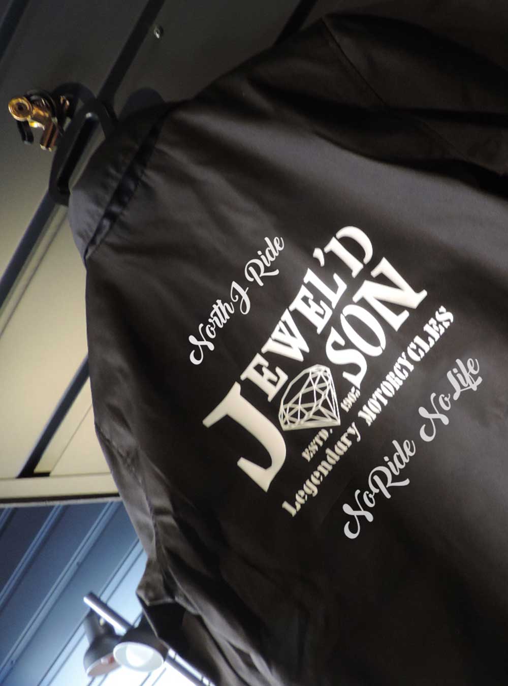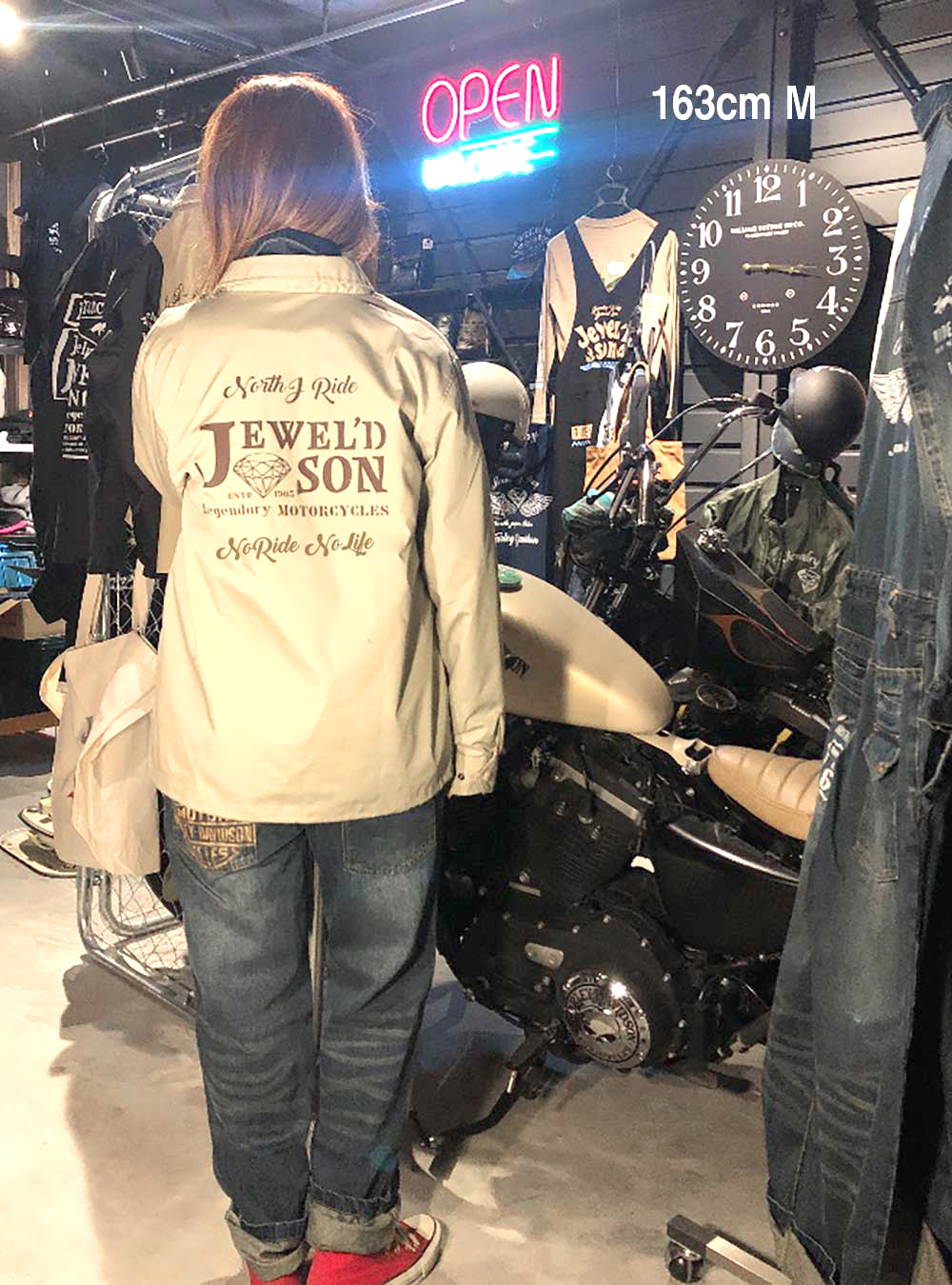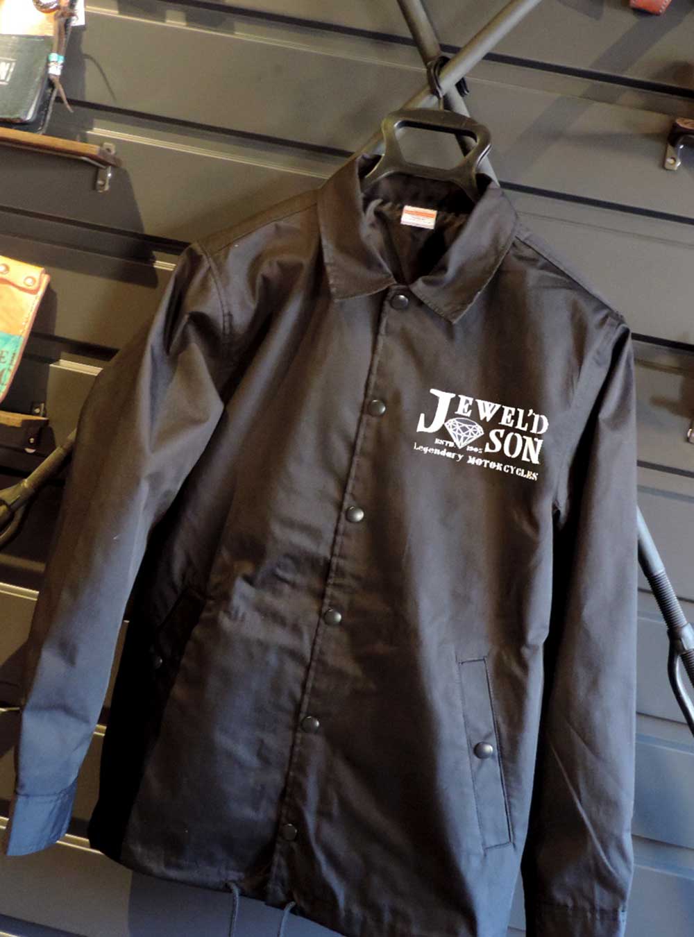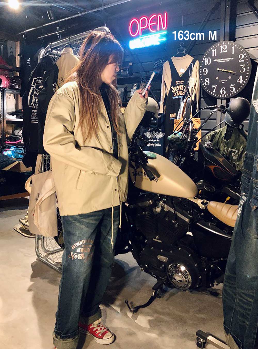 コーチジャケットをT/Cウェザーのマットな生地で仕上げ、L.A.ワーカーのスタイルを体現。JEWEL'D SON TEXTロゴをプリントしたストリートスタイルへのコーディネートにも欠かせないコーチ!
