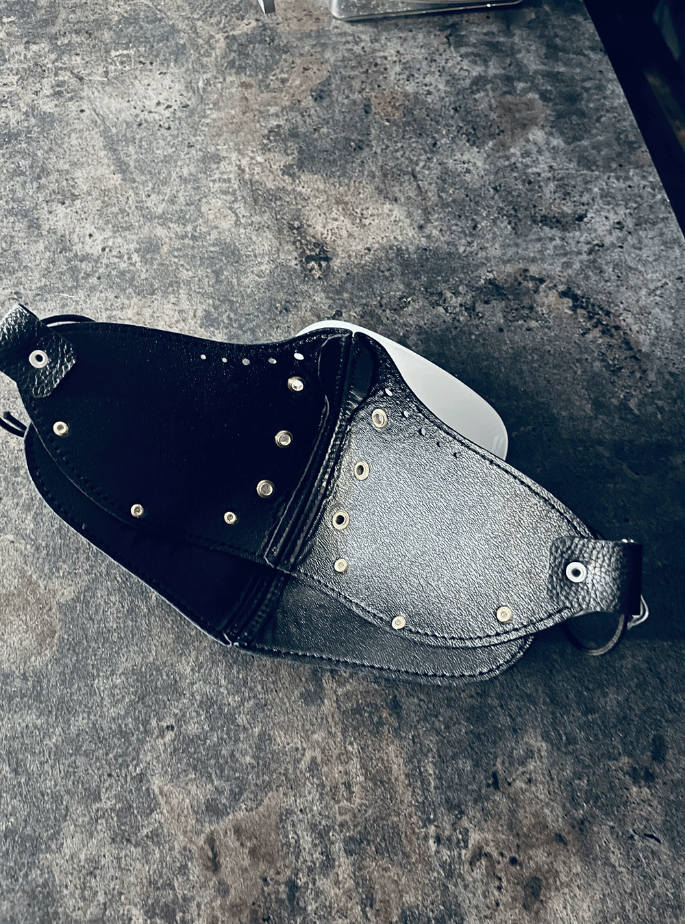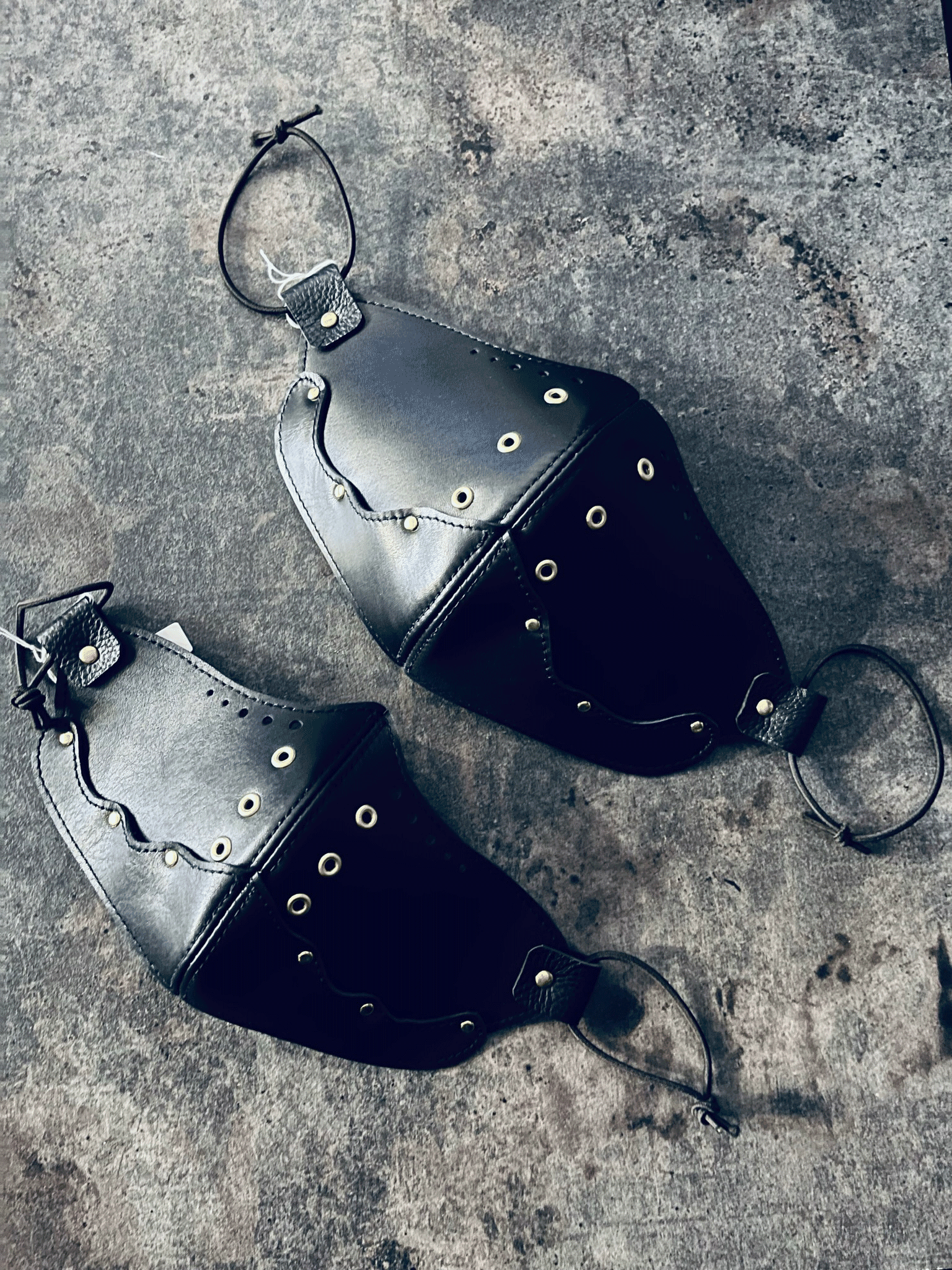 レザーカラスマスク。大きめサイズと小さめサイズの2サイズ展開。 熟練の革職人さんにオーダーしたものです。縫い目もハジ処理もと、ても丁寧に仕上げていただいております。テレビドラマの衣装に使われたデザインのマスクです。
